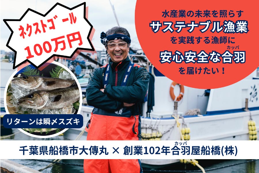 まだまだクラウドファンディングの期間はありますので大傳丸の乗組員さん全員に合羽をプレゼントしたいと思い、ネクストゴールを100万円に設定させていただきます。