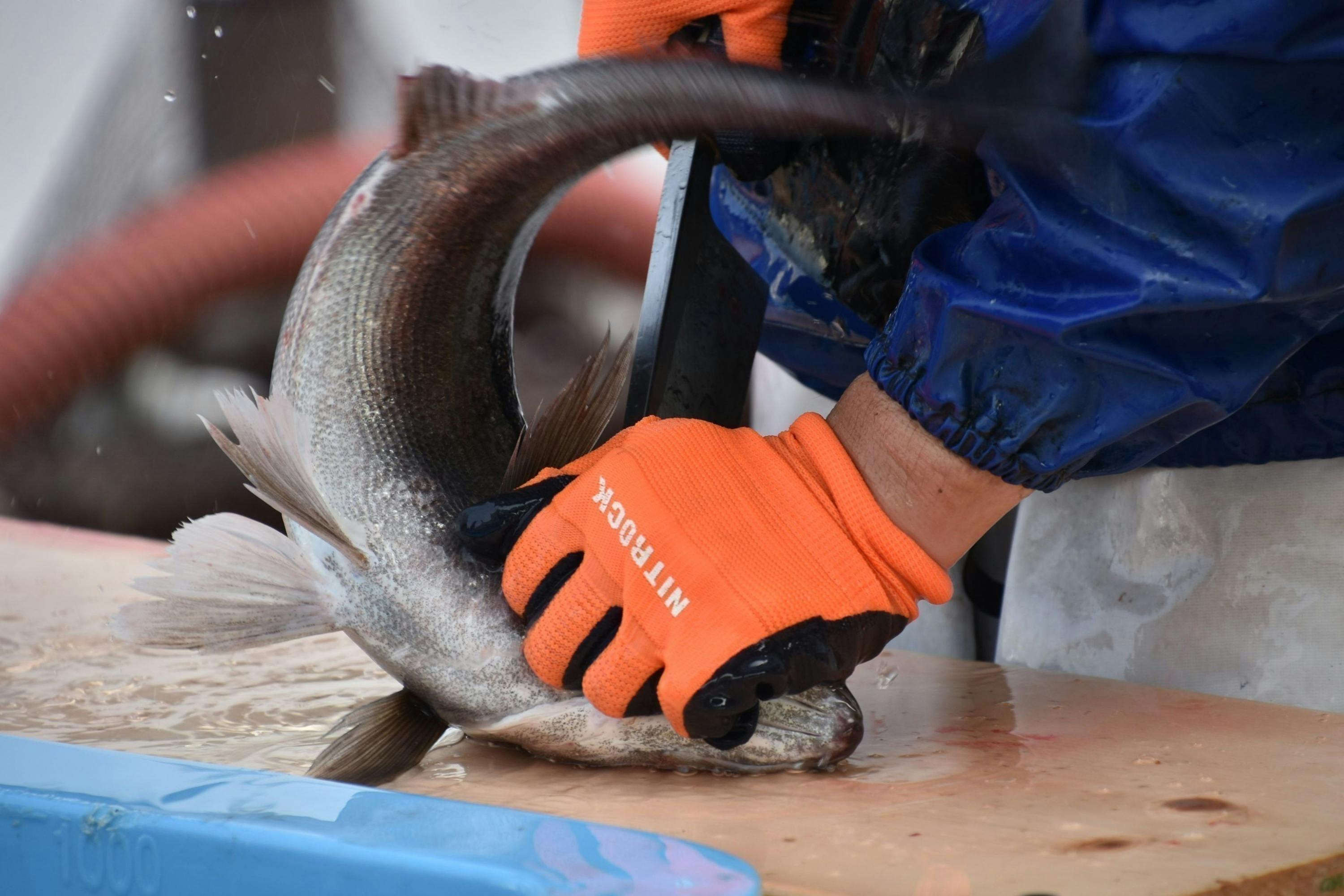 大傳丸ではスズキが産卵期を迎える11月後半からはスズキは原則として狙わすにコノシロを狙いますが、どうしても混獲してしまうことも。その時は、船上で丁寧に拾ってその個体を海に還す「産卵期保護」を実践しています。