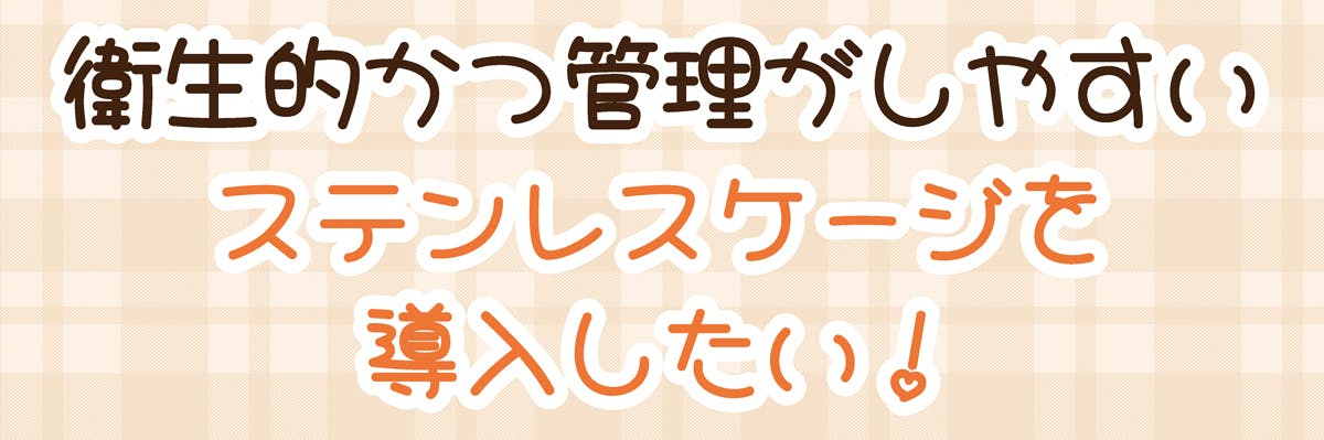 衛生を保ちやすく管理のしやすいステンレスケージを導入したいと思っております。