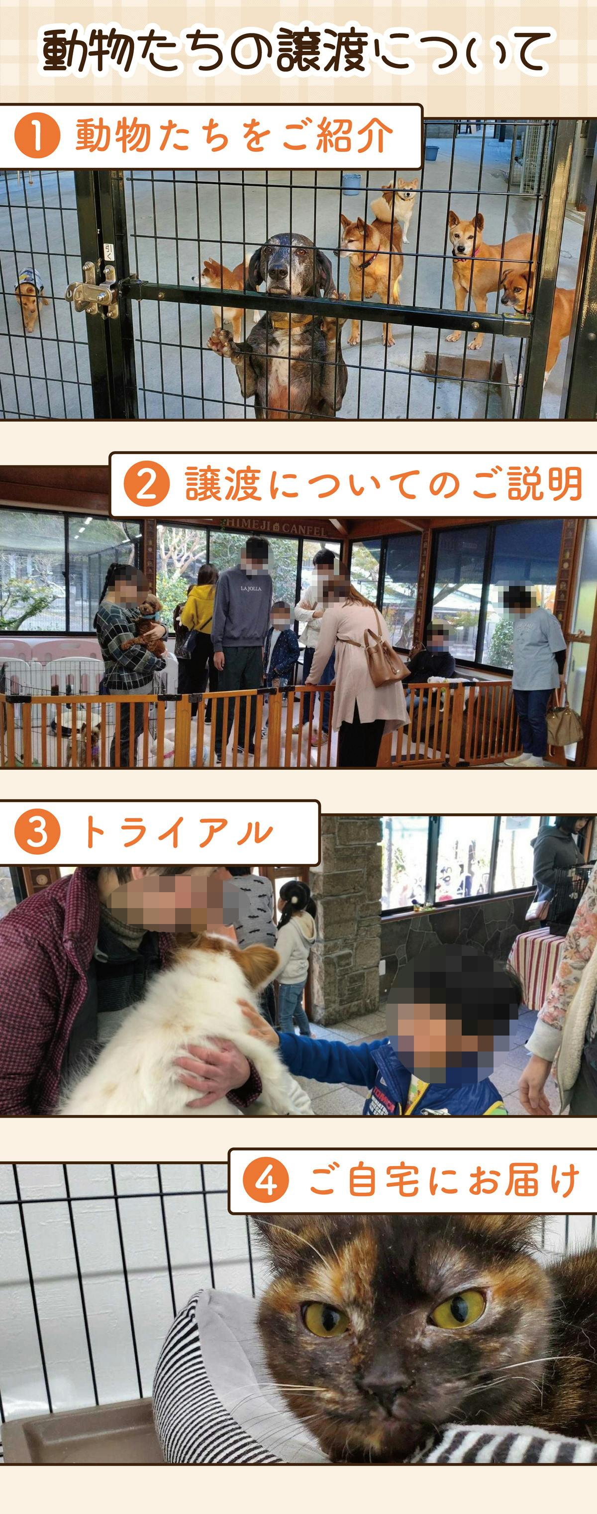 これらの活動を元に、保護動物の受け入れと共に里親となってくださる方とのマッチングを行っています。