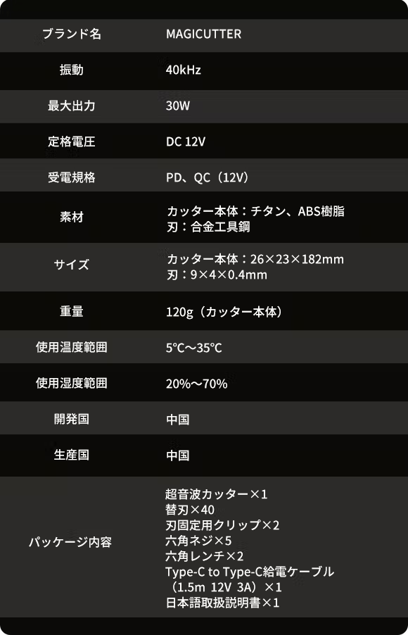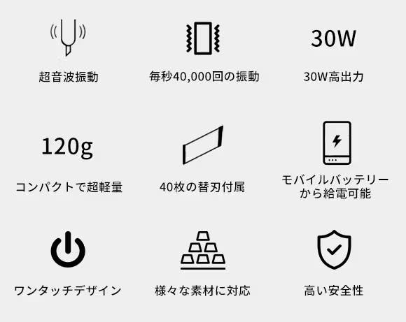 従来の超音波カッターはコンセントから直接給電するのが一般的ですが、MAGICUTTERはUSB給電式のため、モバイルバッテリーからの給電が可能!アウトドアでもDIY可能で自由度も高いです。