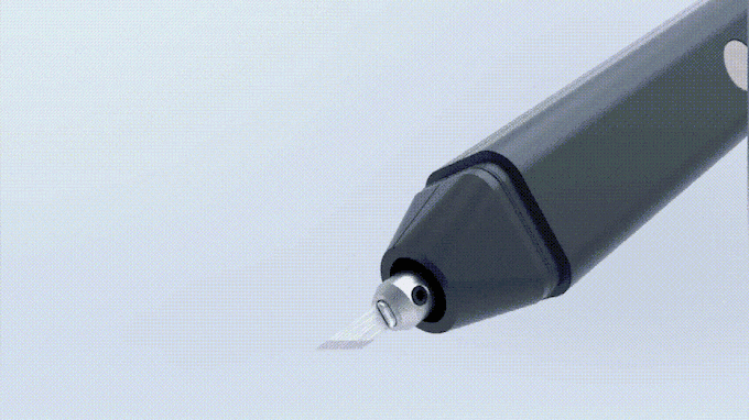 MAGICUTTERのキャップを外す際に指を切らないように、刃先に保護用シリコーンカバーを搭載します。怪我や事故を防ぐと同時に、刃先を保護することもできます。