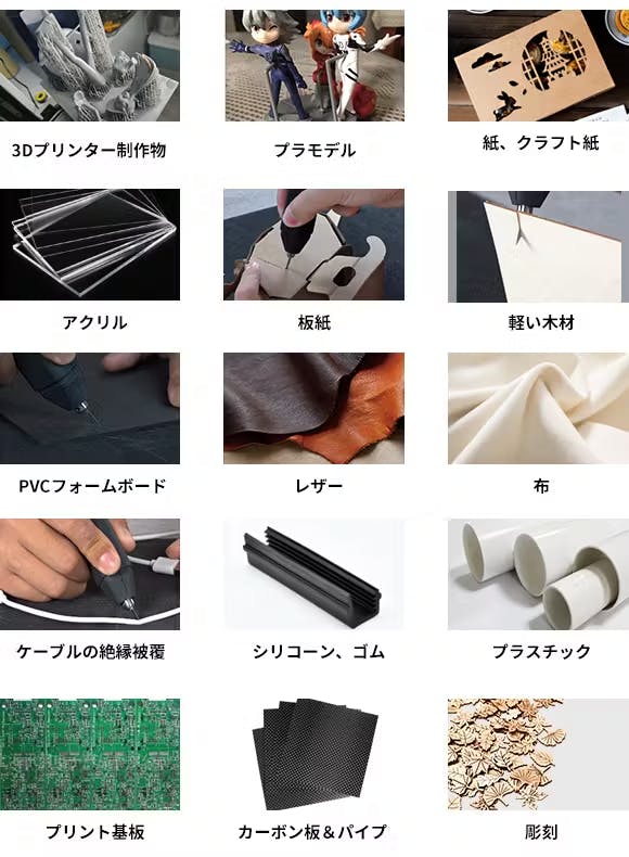 4.30W高出力でプラモデルや3Dプリンター制作物、アクリル、木材などの硬い素材をスムーズに切断可能。