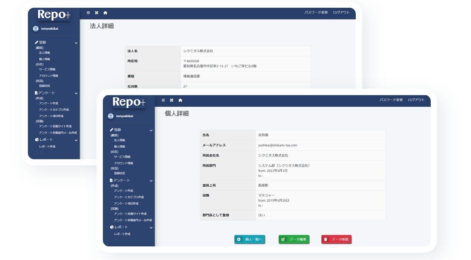 また、独自に開発した組織分析システム「レポタス」を使った組織診断・組織分析自動化の方法を紹介します。