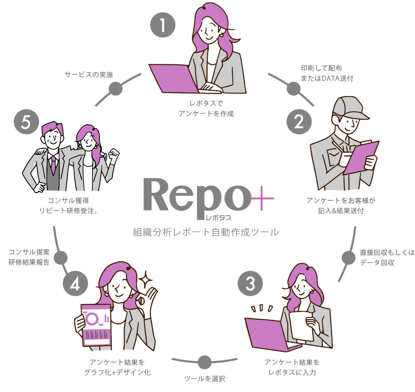 クライアントから収集したデータを基に、情報を図やグラフでわかりやすく表現し、具体的なレポートを提供します。
