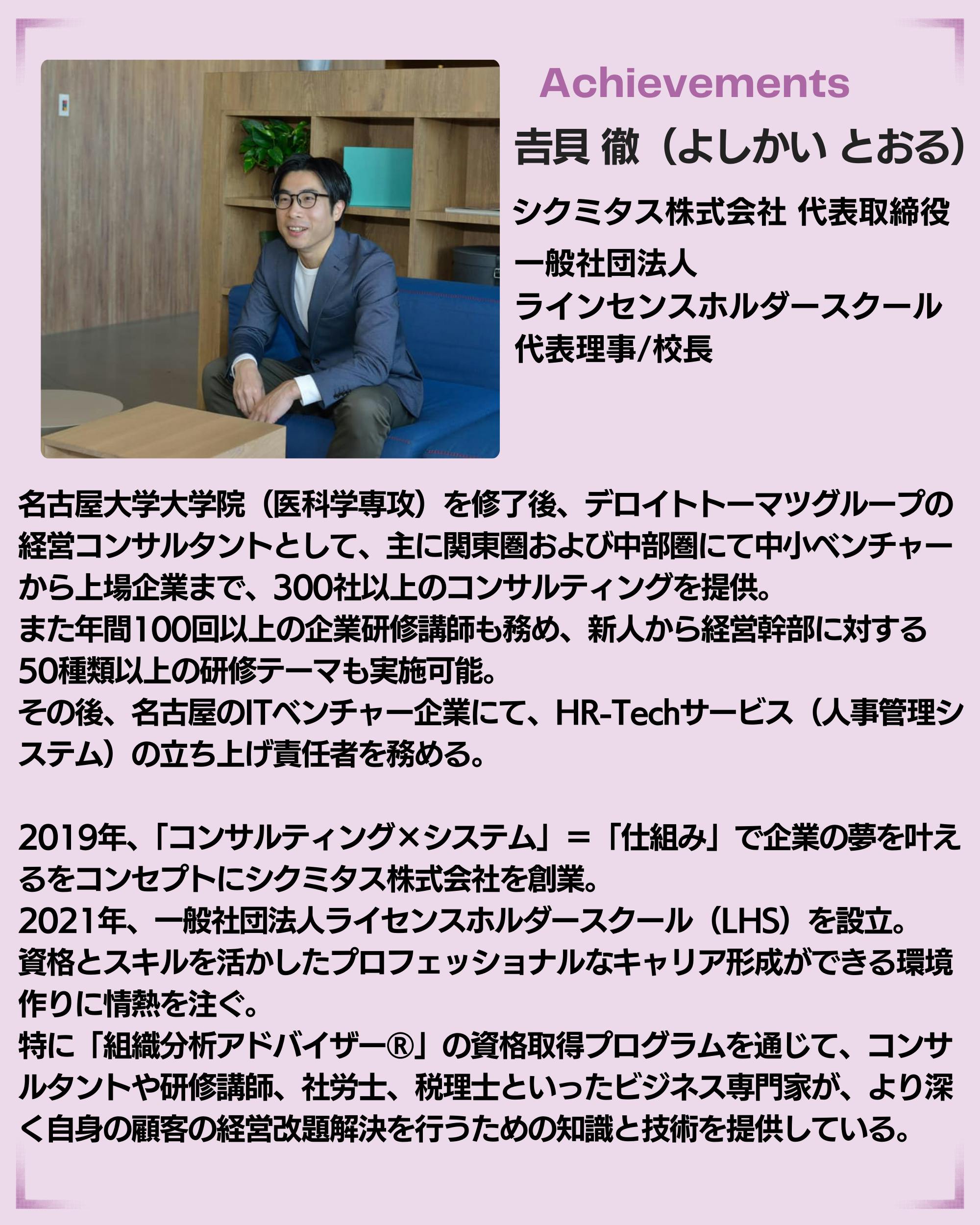 シクミタス株式会社の𠮷貝徹です。