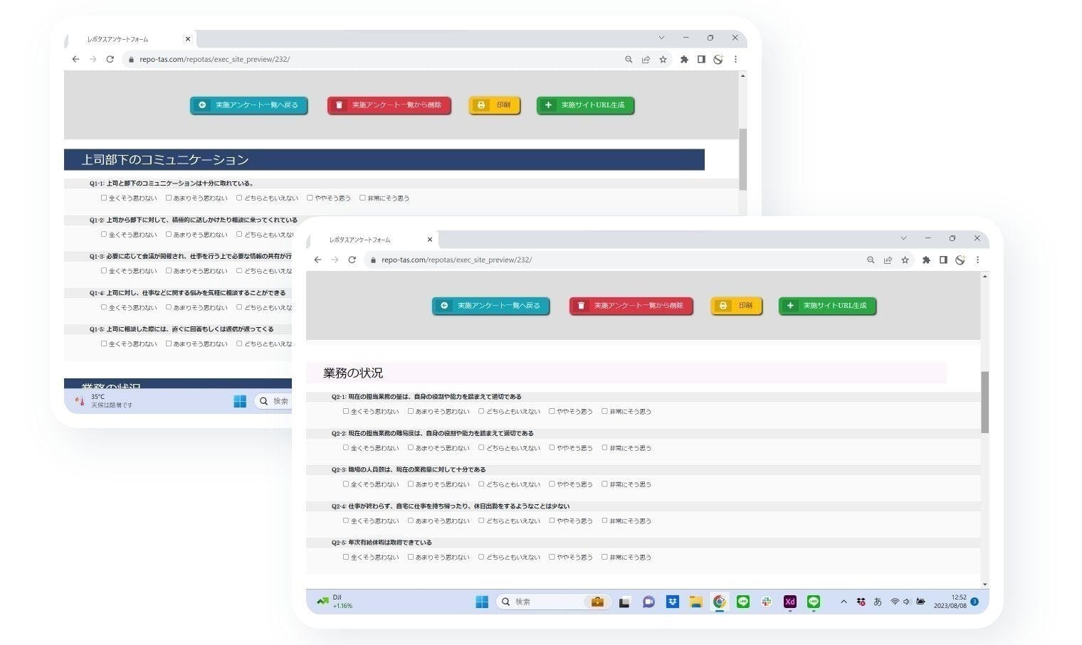 「レポタス」は、アンケート質問項目を自由に作成できるのでさまざまな状況や顧客に対応することが可能です。