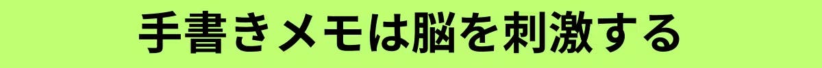 文字を書く行為は脳を刺激すると言われています。つまりは、手書きでメモをすることでアイデアが沸きやすかったり、記憶に残りやすかったりするということです。また、メモアプリなどのデジタルメモに比べて、手書きメモは下線を引いたり、丸を付けたりといったメモの自由度が高く、思考を整理しやすいというメリットもあります。