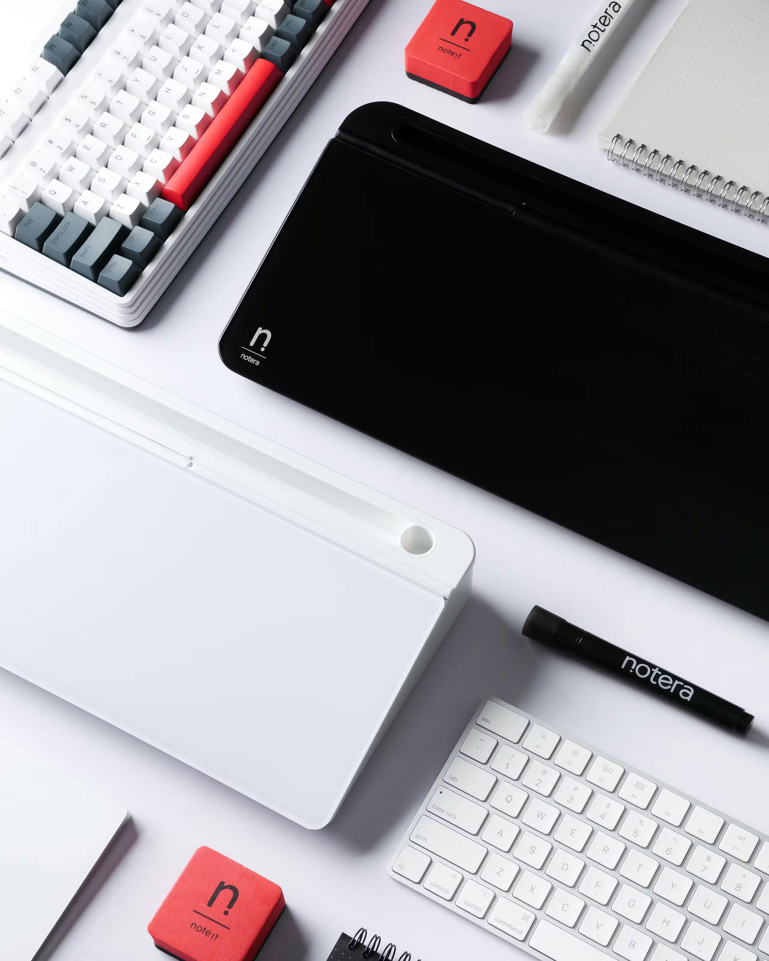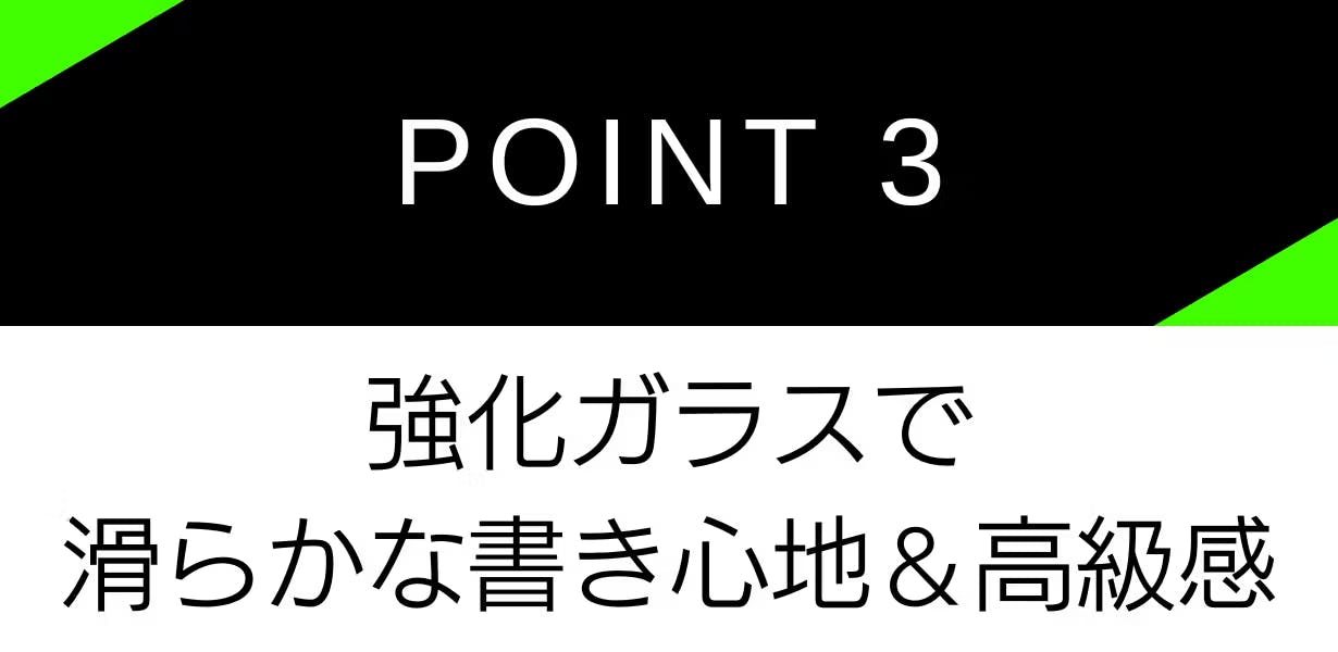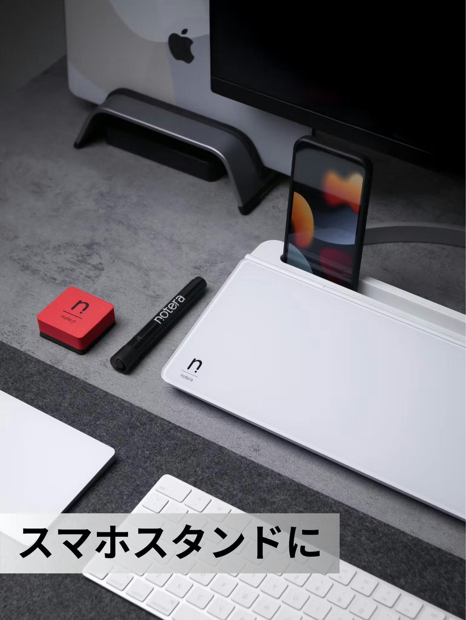 notera Wedge Liteの筆記面は強化ガラスでできており、滑らかな書き心地に加えて、マーカーの消し跡が残りにくい特徴があります。1度書けばわかる、メモしたくなる書き心地です。