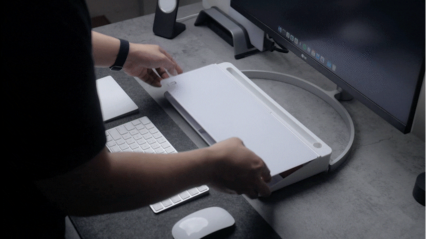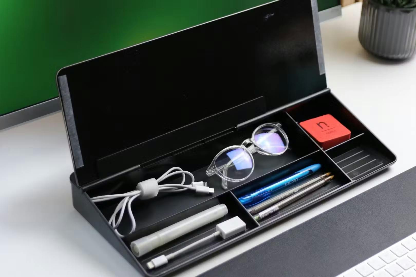 notera Wedge Liteは収納機能にも優れています。デスク周りの小物やスマホなどをスッキリ整理し、作業スペースを確保することができます。