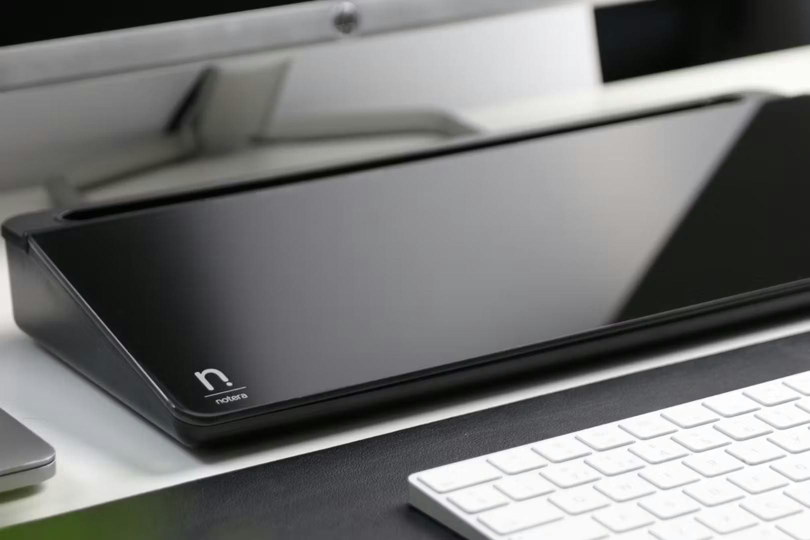 notera Wedge Liteはデスク用ガラスホワイトボード。モニターとキーボードの間に置いて使用し、仕事中のタスクやアイデアを「サッと」メモすることができます。