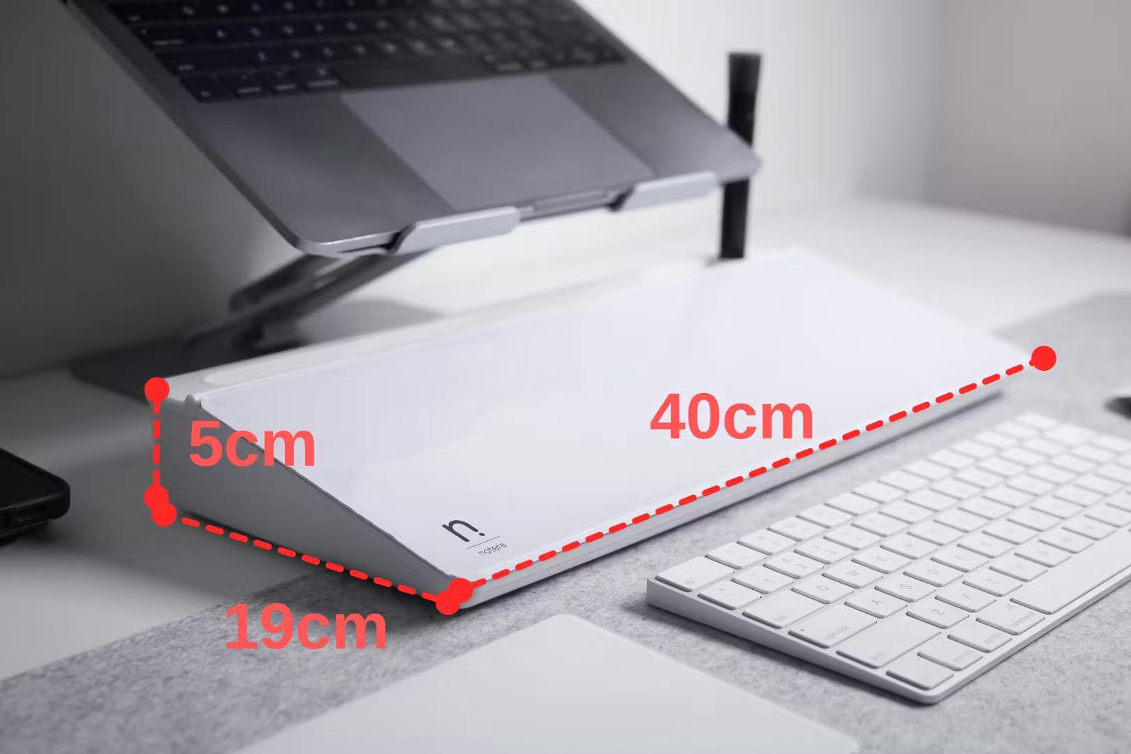 サイズは40×19×5cmで、小さめのモニターやデスクを使っている方の作業スペースも圧迫しないコンパクトサイズとなっています。