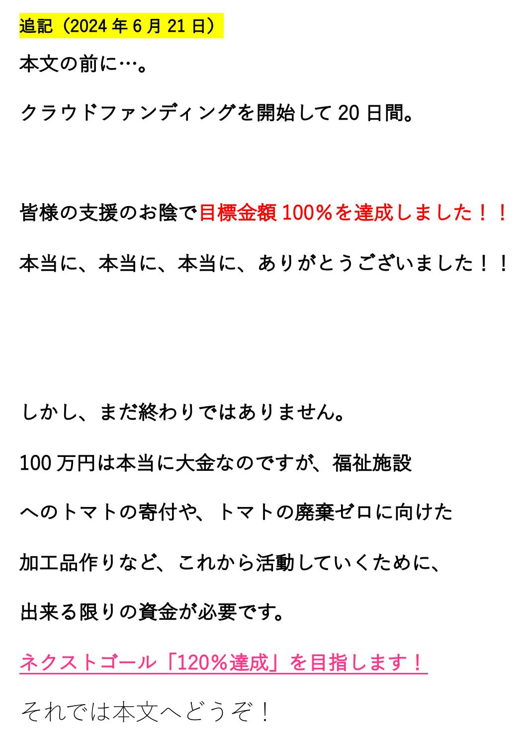 必ず成功して、日本一のトマト産地が長年抱えてきたトマト廃棄の問題を解決し