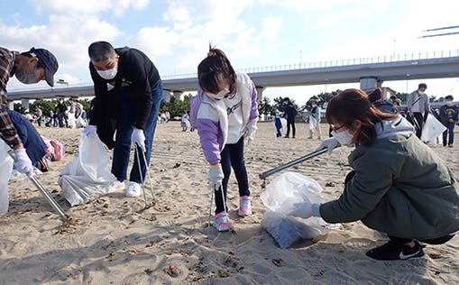 これまでも地域の方々や関連団体と多数のビーチクリーンを実施したり、貝塚市立自然遊学館では環境教育の一環として二色の浜の生態調査イベントを行い、海の状況を観察する等し、きれいな二色の浜であるよう努めてきました。