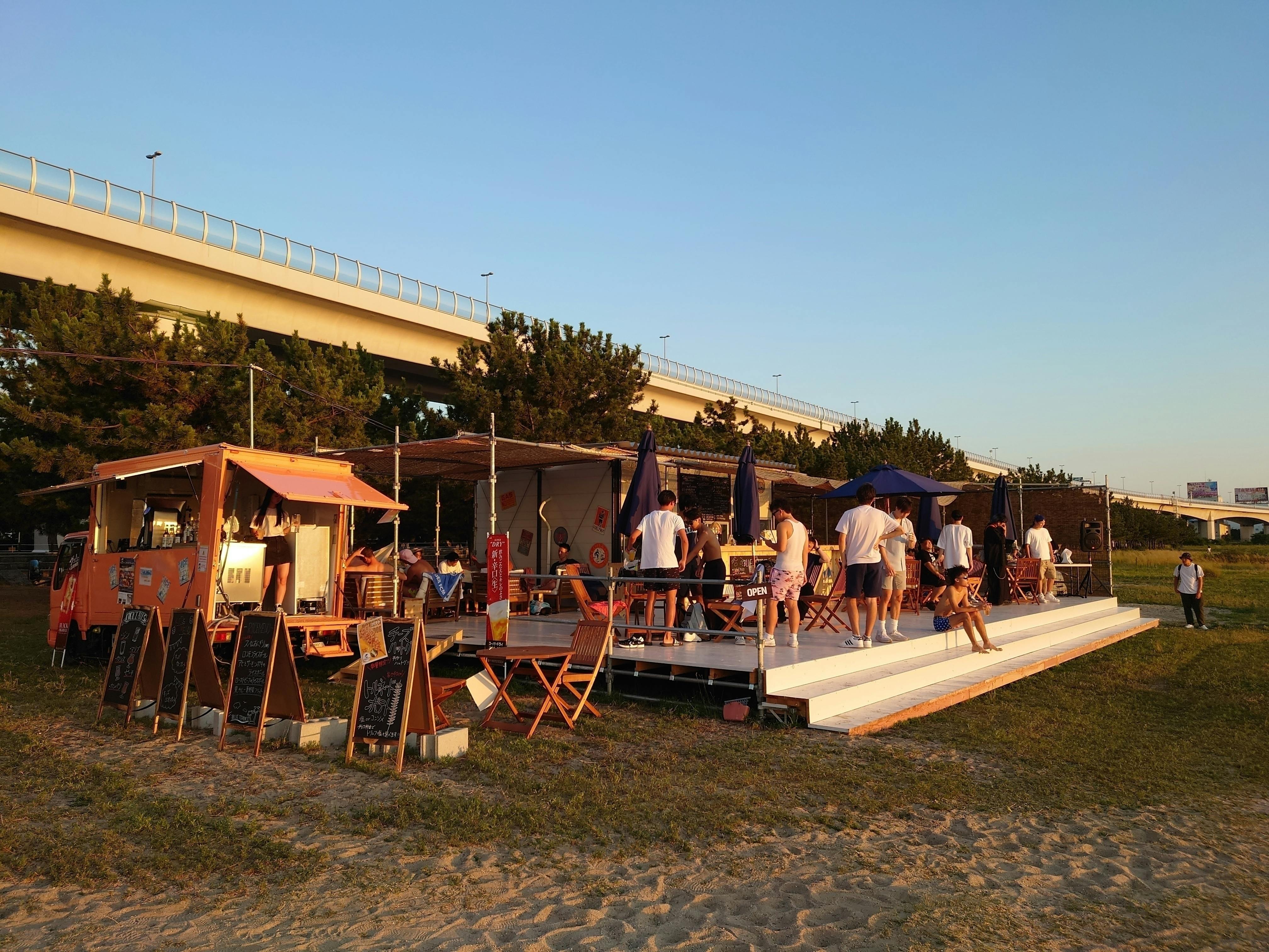 迫力のある高い高速道路を見上げ、時には思わず海へ走り出しそうなシームレスな環境で、雨天時も気にせずBBQを楽しんでいただけます。