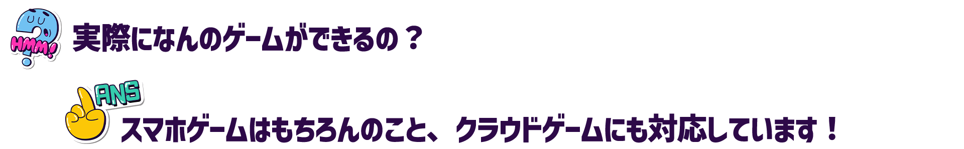 スマホのアプリゲーム(Google Playで配信されているもの)はもちろんのこと、クラウドゲームにも対応しており、Google Play、App Store、Xbox クラウドゲーミング(GamePass)、Steam Link、GeForce NOW等の数千本のクラウドゲームで遊ぶことができます。