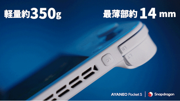 小型で小さい手の女性でも持ちやすく、軽量なデザインを採用。その軽さは、約350gで最薄部は約14mmで、重さを感じることなくゲームプレイが可能です。