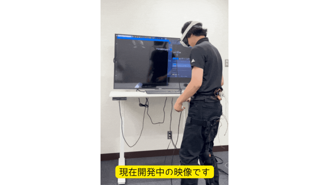 しかし、私が思う未来の世界では、人々は現実空間からVR空間まで様々な世界を、場所を選ばず行き来するようになるのではないかと想像します。そうすると、決まった場所でプレイしなければならないフルダイブ型やルームランナー型デバイスではなく、新たな別の方法が必要なのではないか、それが私たちの考えるVR歩行アシストスーツ「にゅーぼ」です。