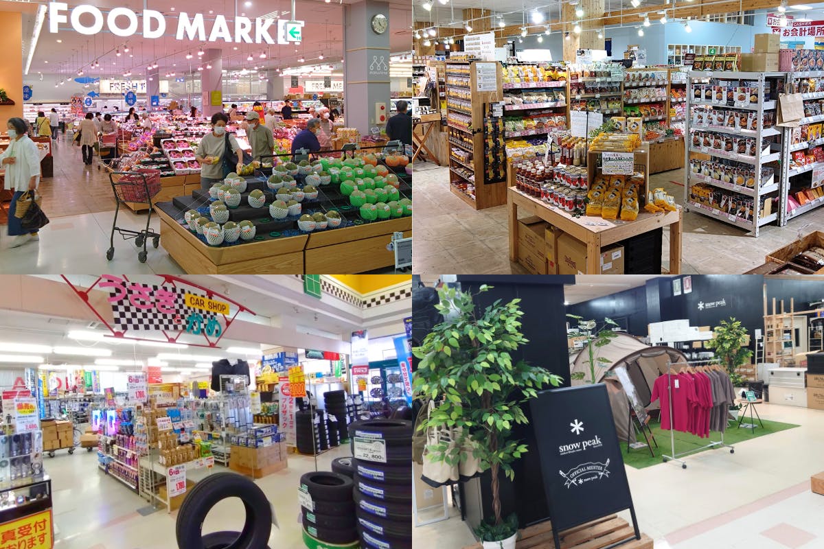 店内に入ると、通常の食料品売り場の横にバイヤーが目利きして選んだ全国のセレクト食品が並ぶ売り場があったり、ホームセンター並の品揃えの日用品コーナー、人気ブランド「snow peak」を扱うアウトドアフロア、書籍、おもちゃ、カー用品、スーパーなのに店舗内に業務スーパーがあるなど「ないものがない」のではないかと思わせる品揃えで楽しませてくれます。