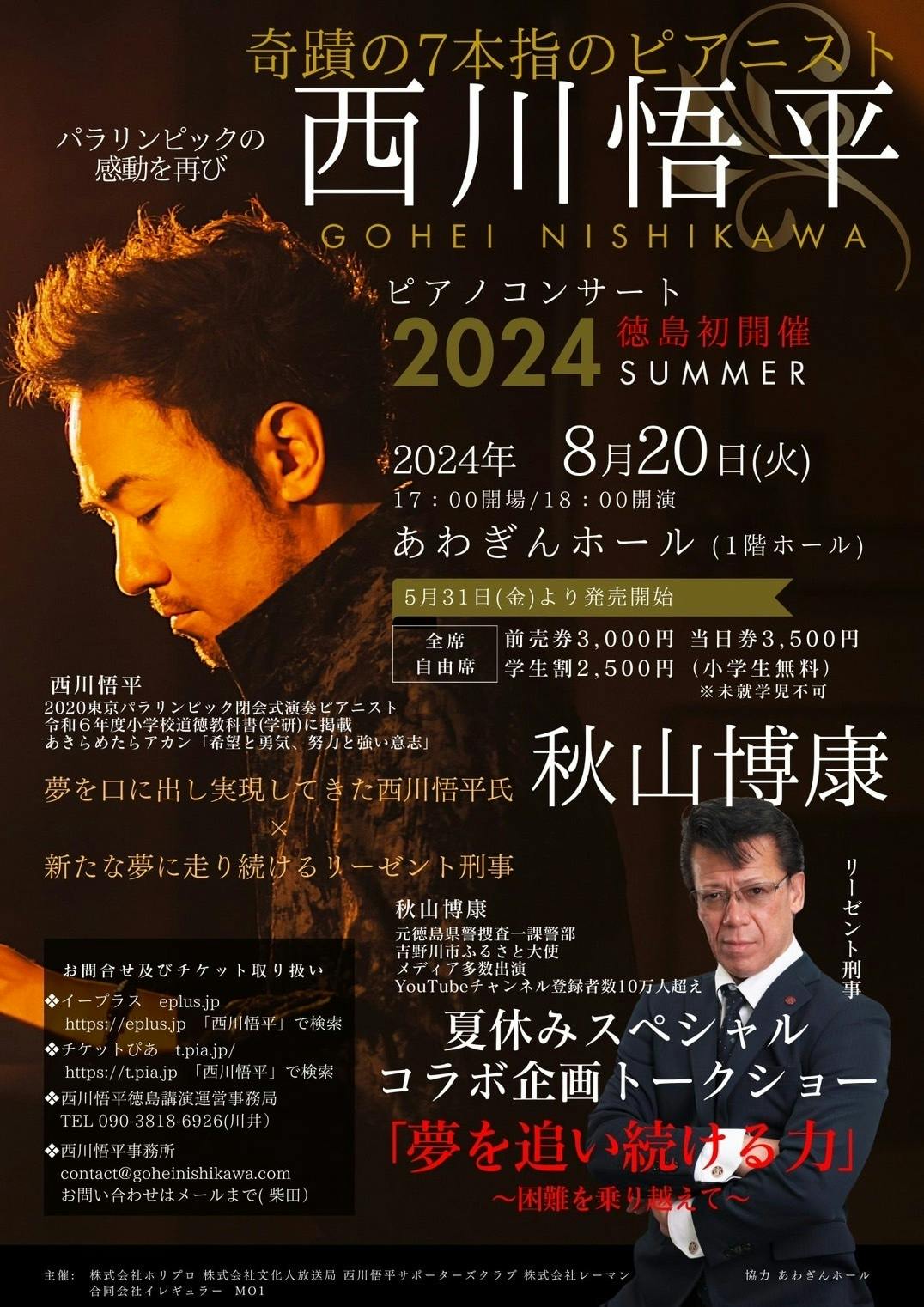 徳島初開催となる、「西川 悟平氏トーク&コンサート」を開催します!!