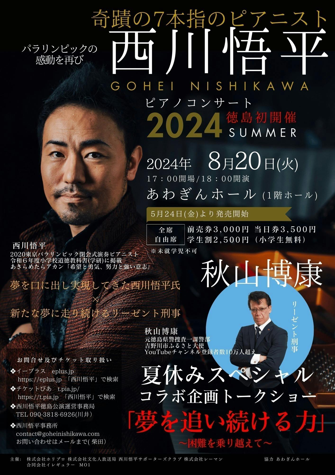 このプロジェクトは、西川 悟平氏と秋山 博康氏という二人の著名な人物が徳島で初めて共演&開催するという特別なトーク&コンサートです。