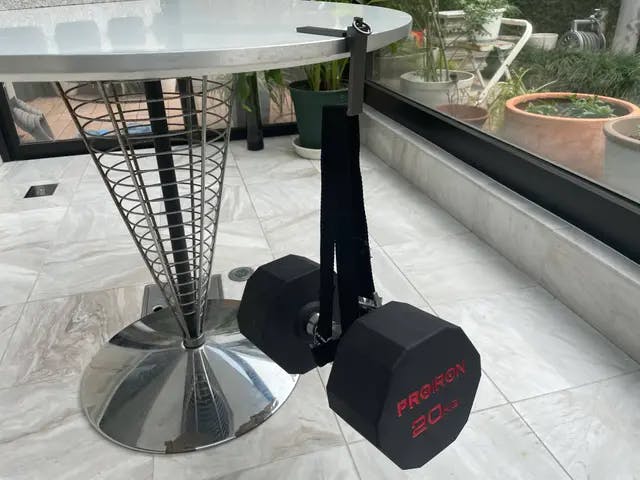 9kgのブロックを2個ぶらさげても、びくともしないタフなボディー