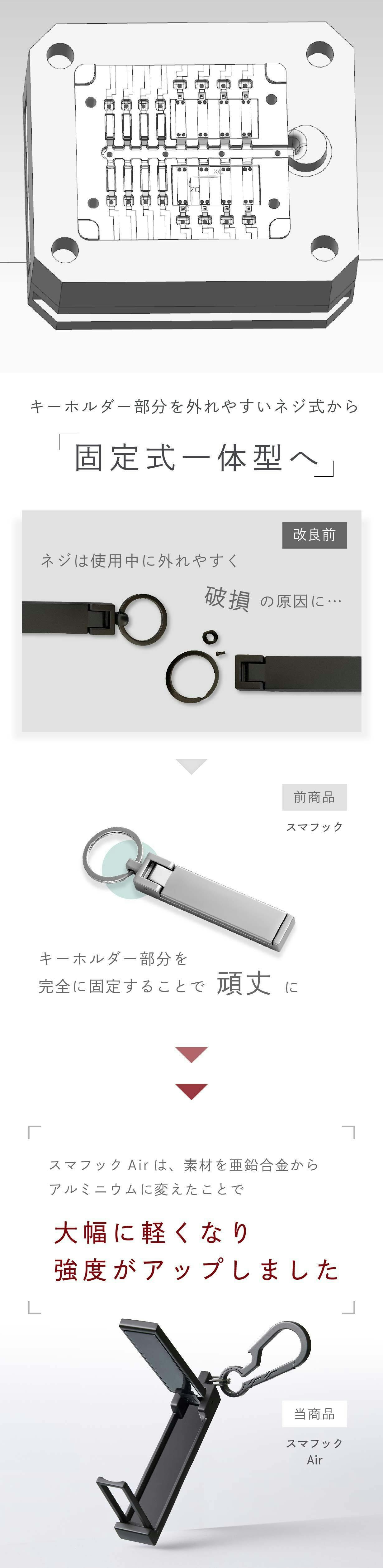 素材を亜鉛合金からアルミニウム合金に変えたことで、重さが軽くなり、強度が増しました!
