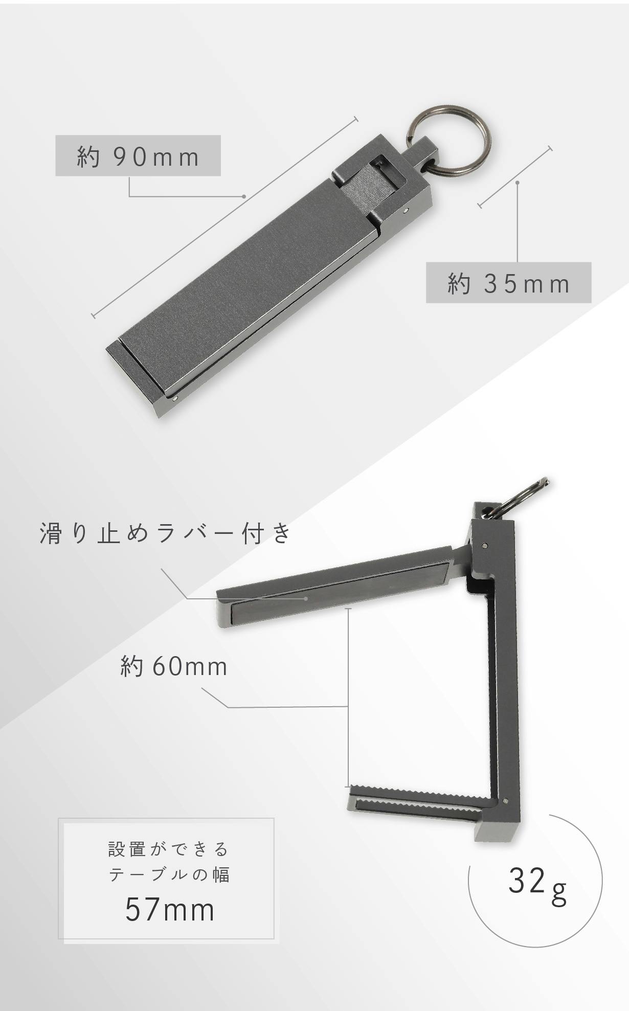 サクランボ4粒(約32g)の軽さで、20㎏の耐荷重