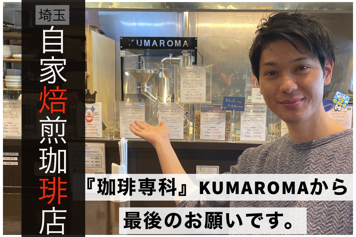埼玉県で自家焙煎珈琲店を営んでおります『珈琲専科』KUMAORMA(クマロマ)と申します。