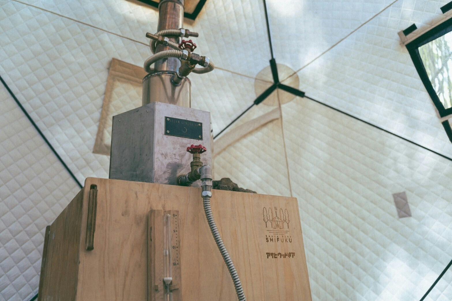 madsaunistが開発したこのスチームジェネレーター"ウロボロス"は、過熱水蒸気をテントサウナ内に放出できる装置です。