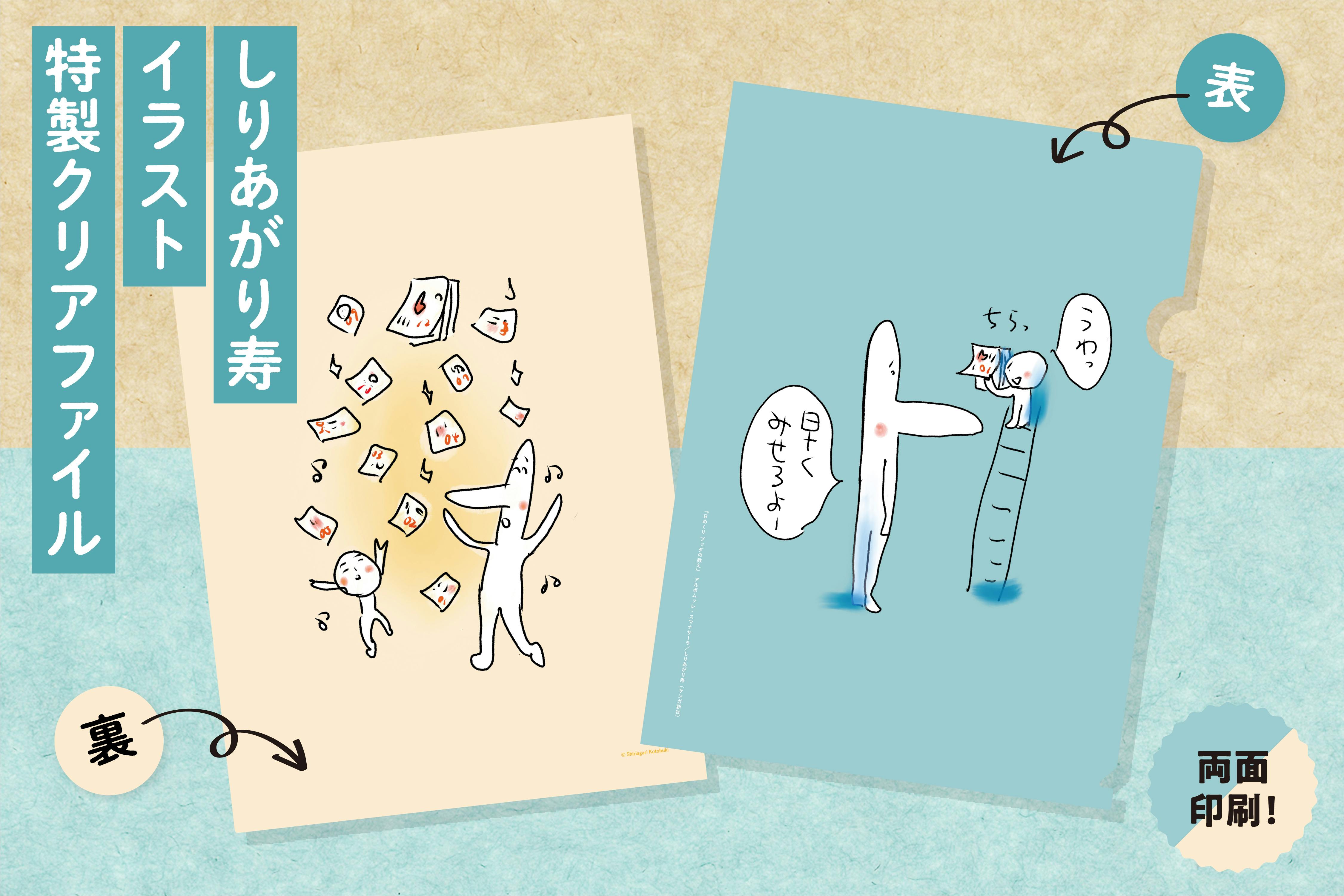 特製クリアファイル付きのリターンをお申し込みいただいた方には、しりあがり寿さんのイラストを掲載した特製クリアファイルをお届けします。