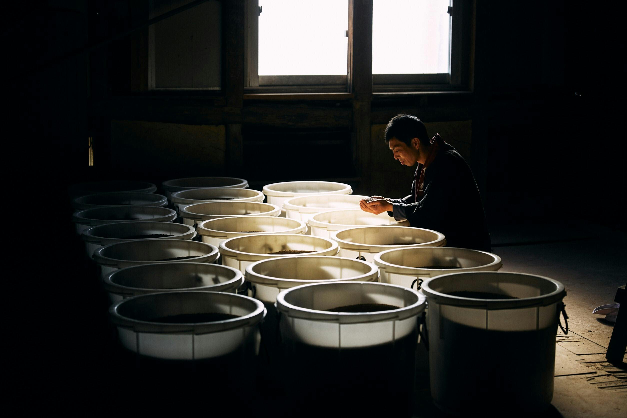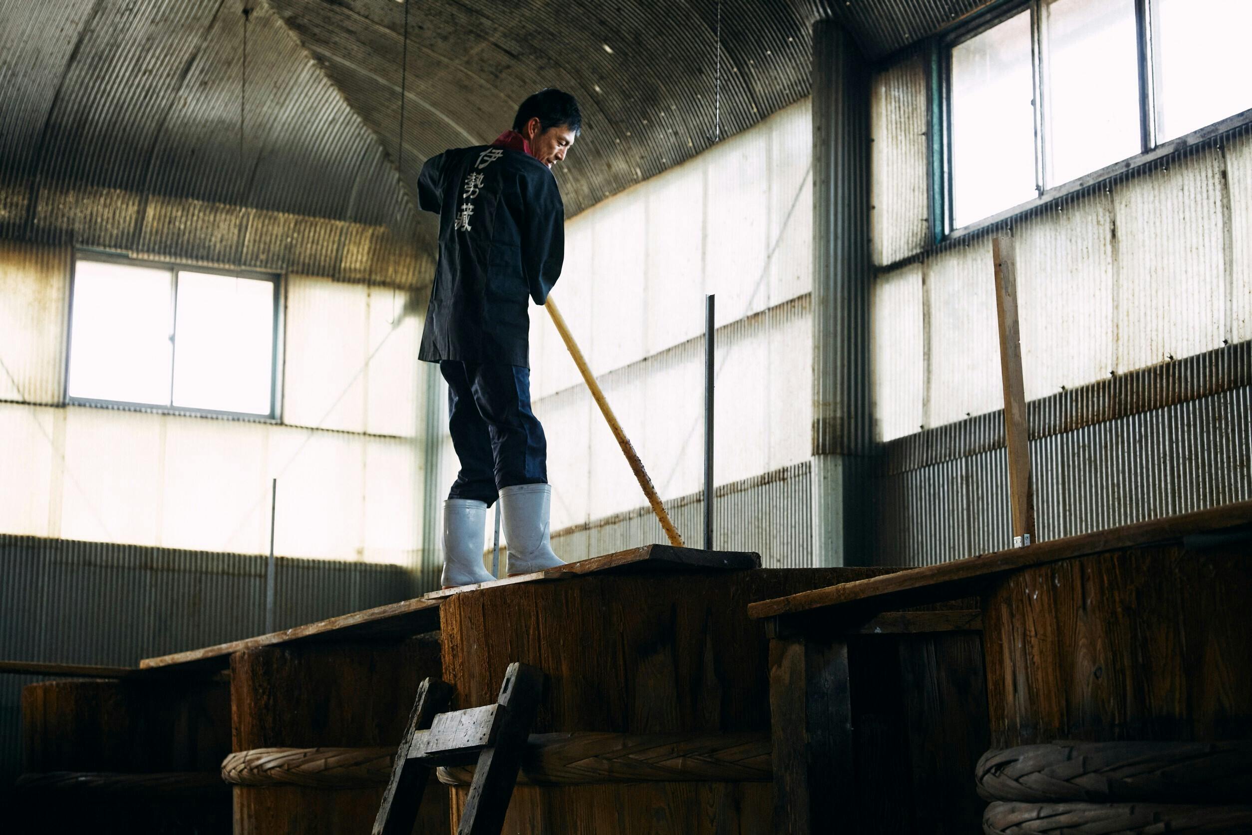 大きな挑戦とは、もちろん当代ではやったことのない仕込み方法で白醬油を仕込むことでもありますが、それよりも新しい味の誕生を見届けることにあります。今回のプロジェクトでは既に伊勢藏に馴染んだ桶を使うのではなく、頂きものの新米木桶で仕込みに挑戦します。桶は使えば使うほどに蔵に馴染み、蔵の味を造るようになっていきます。長い年月と幾多の試行錯誤の果てに桶と作り手の間にはある種の信頼関係が生まれ、伊勢藏の「蔵グセ」がついた醤油を世に送り出せるようになります。
