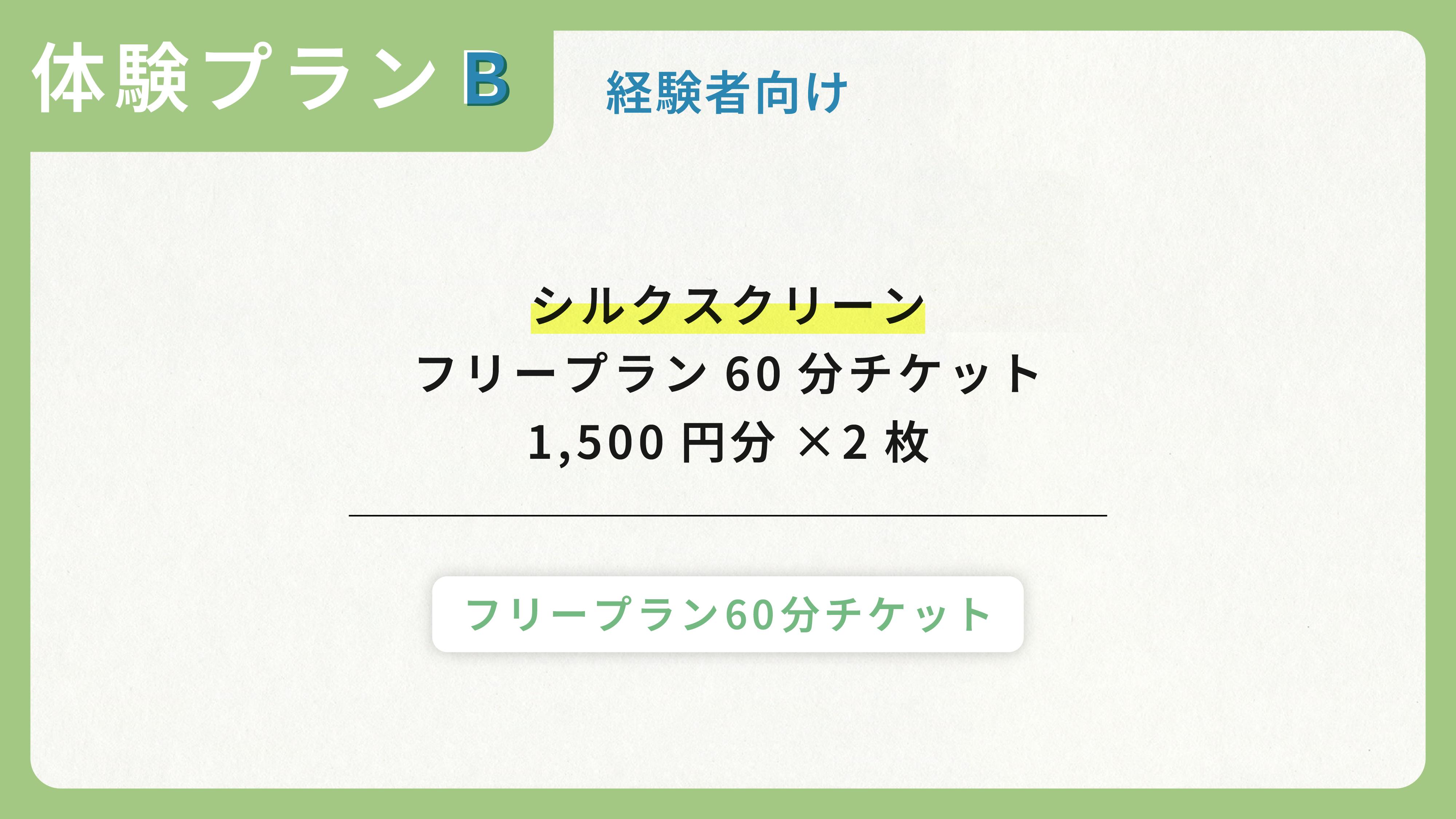 ▶︎【体験プラン】フリープラン60分(シルクスクリーン)チケット2枚 5,000円