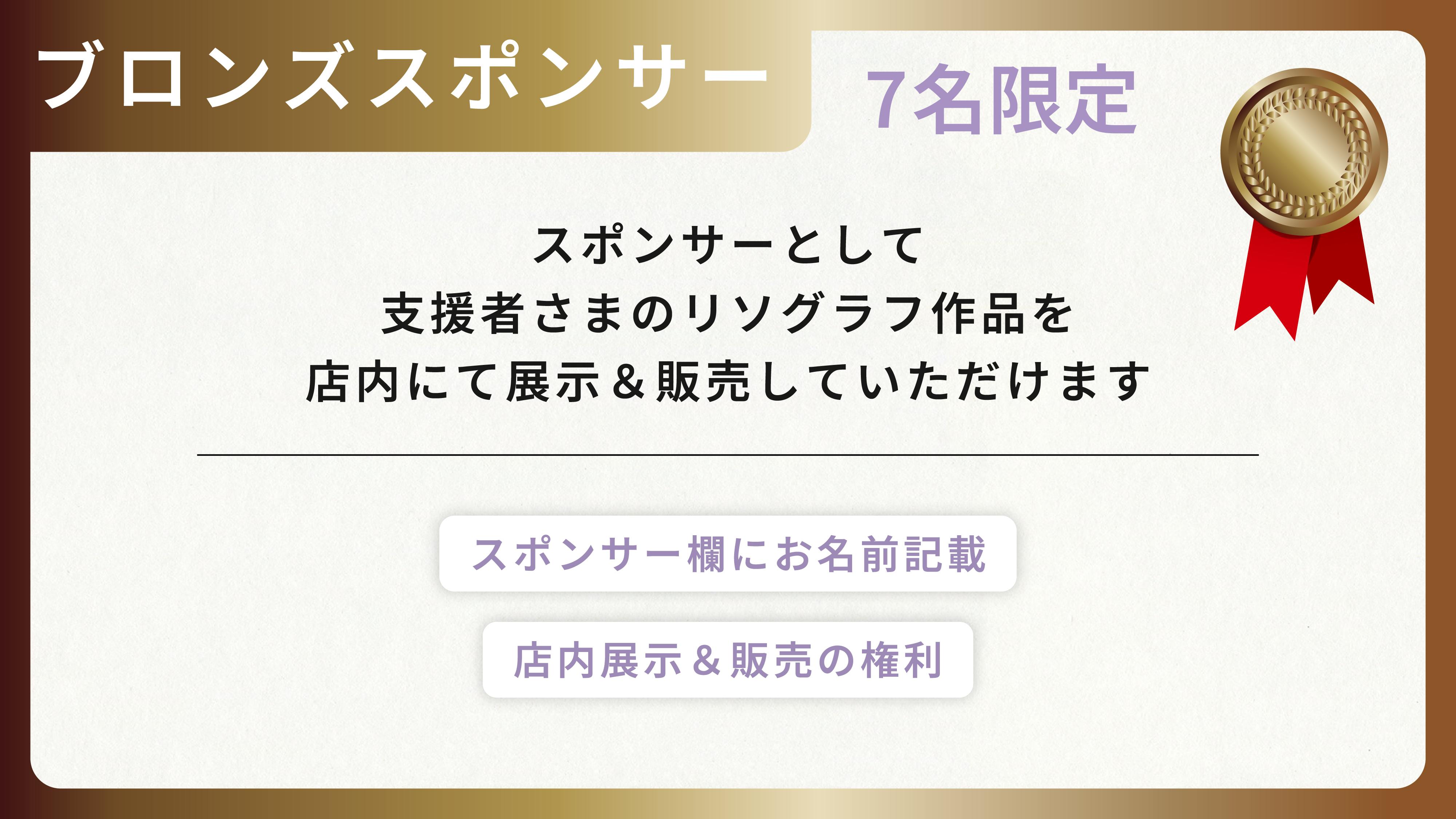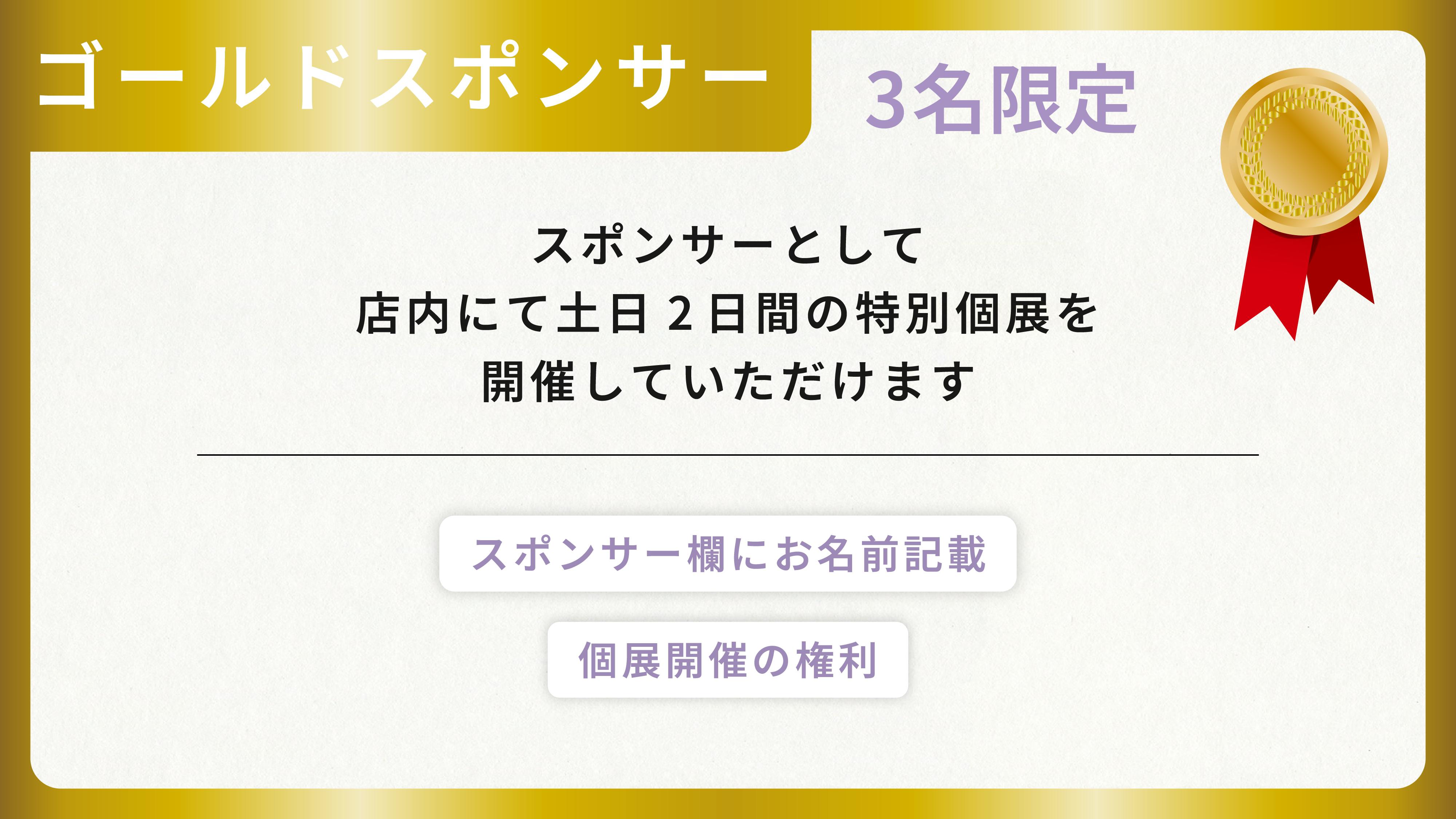 ※ブロンズスポンサーと同内容の展示&販売の権利を1作品だけご利用いただけるリターンです。