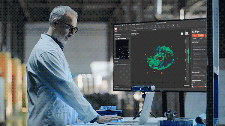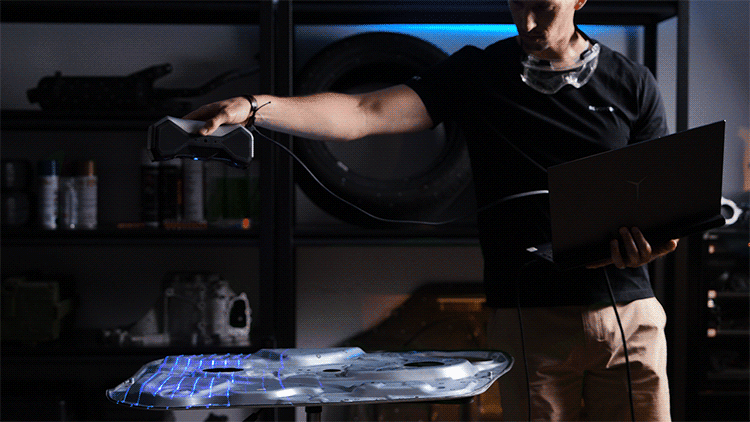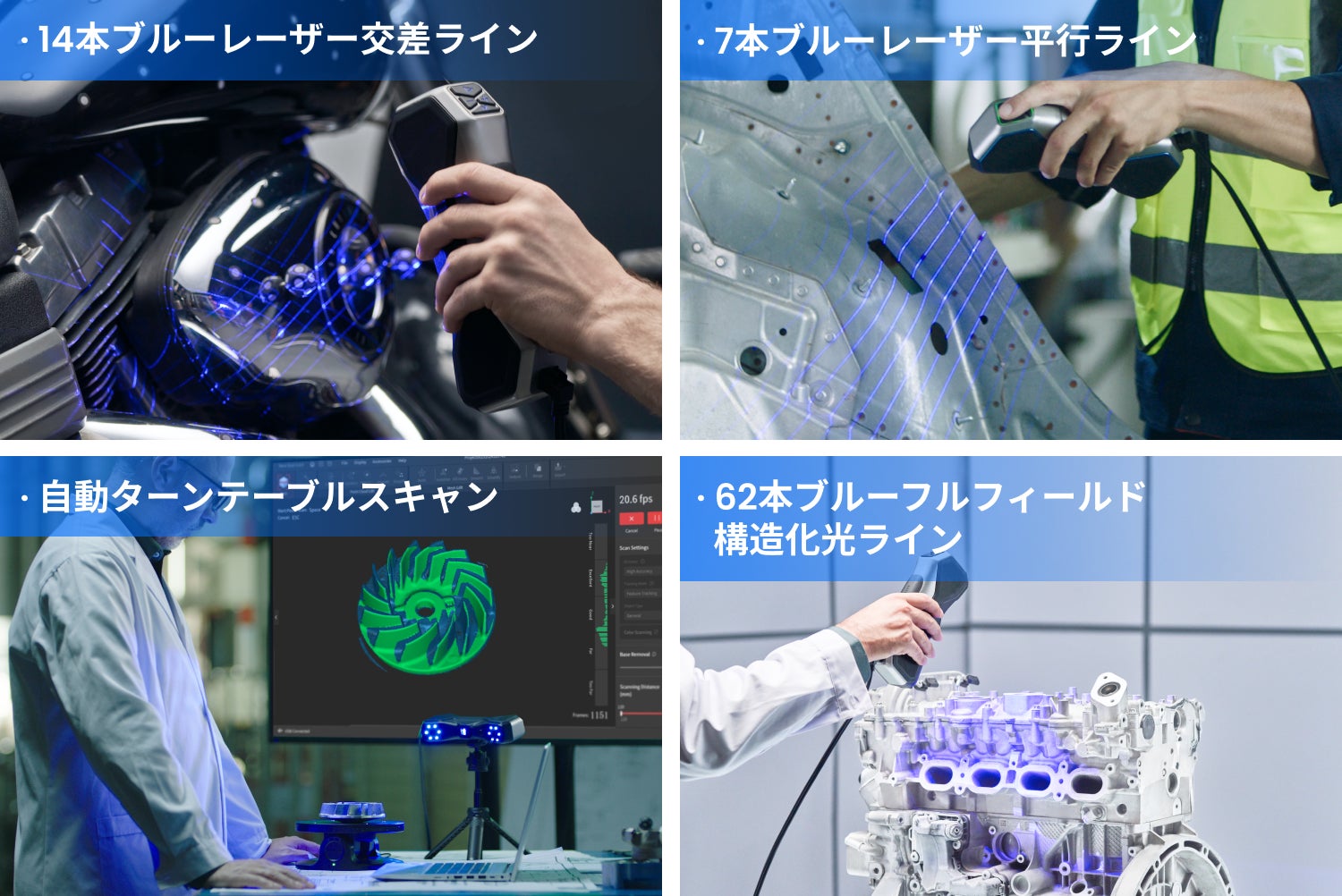 (3) ブルーライト構造化光技術により、1秒間に最大700万ポイントをキャプチャでき、マーカーなしで複雑なオブジェクトをスキャン可能です。