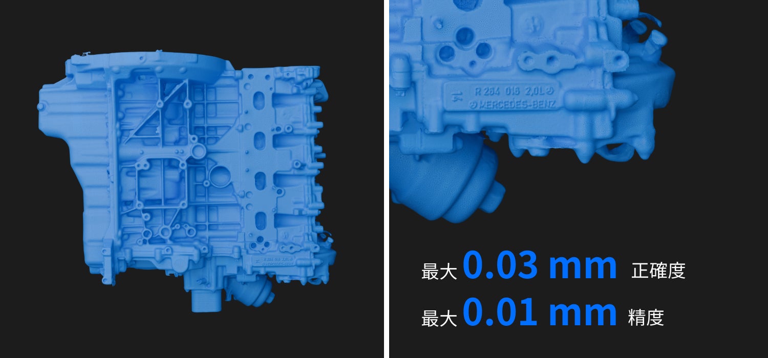 ◎ 0.01 mmの計測グレード精度、0.03mmまでの正確度、高精細な3Dデータを作成可能