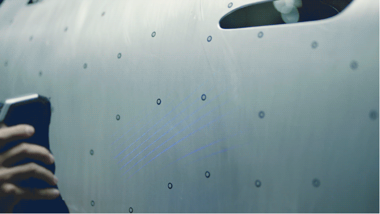 MetroXの14本の交差したブルーレーザーラインは、最大毎秒80万点の速度でスキャンを行い、機械や光沢のある物体、黒い物体の平坦で特徴のない領域を、スキャンスプレーなしで素早く捉えます。