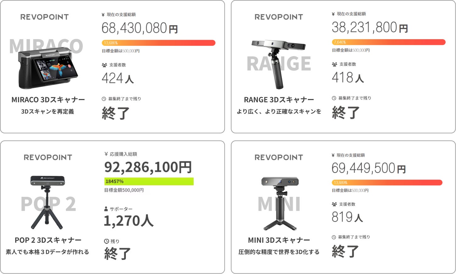 過去のREVOPOINT製品は日本のクラウドファンディングで合計338,733,641円を集めております。