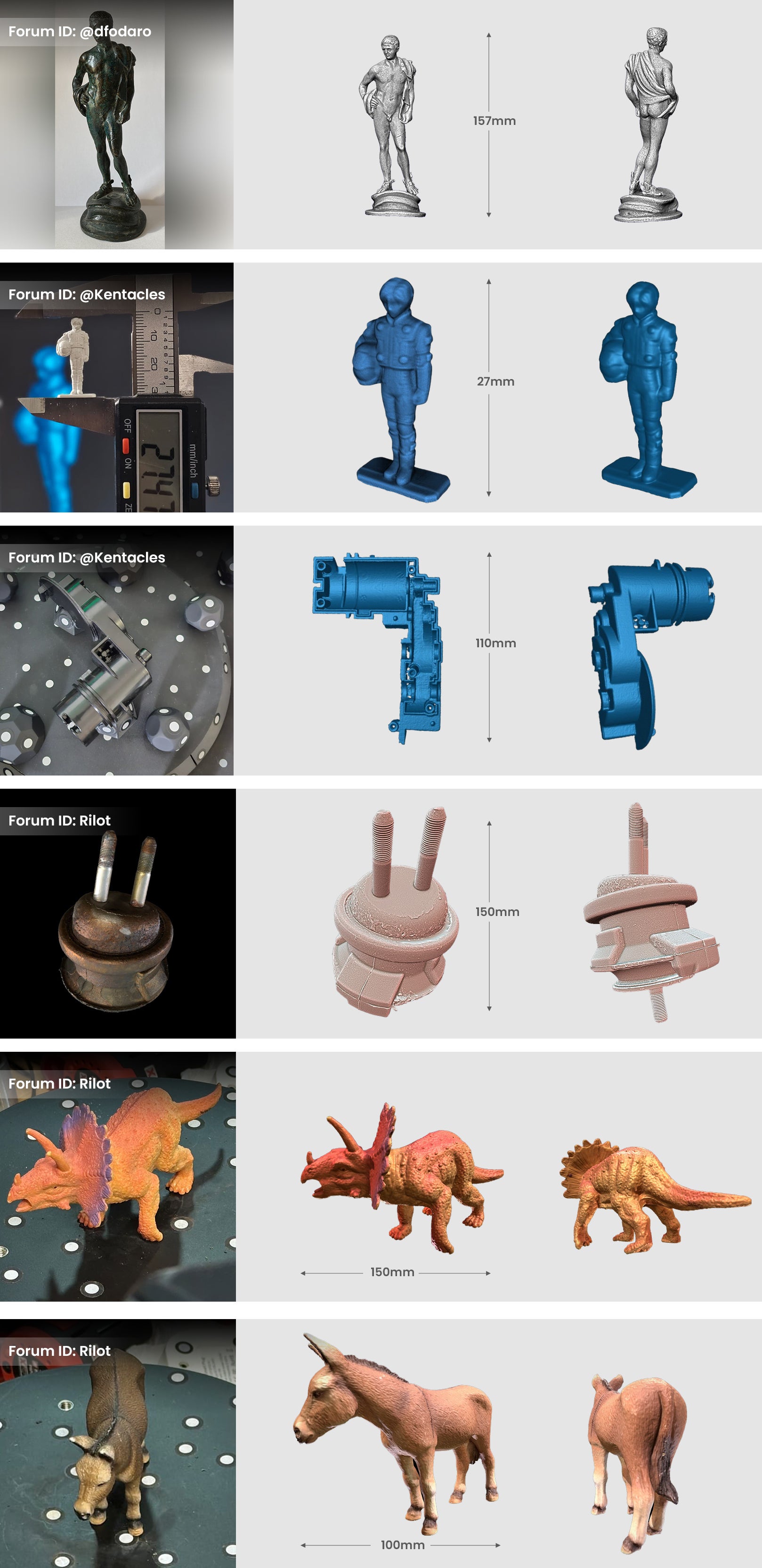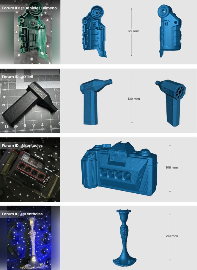 💁♂️「工業部品からタイヤまでをスキャンしてみましたが、精度が非常に高いと感じました。モデルのディテールも素晴らしく、コストパフォーマンスは抜群だと思います。」