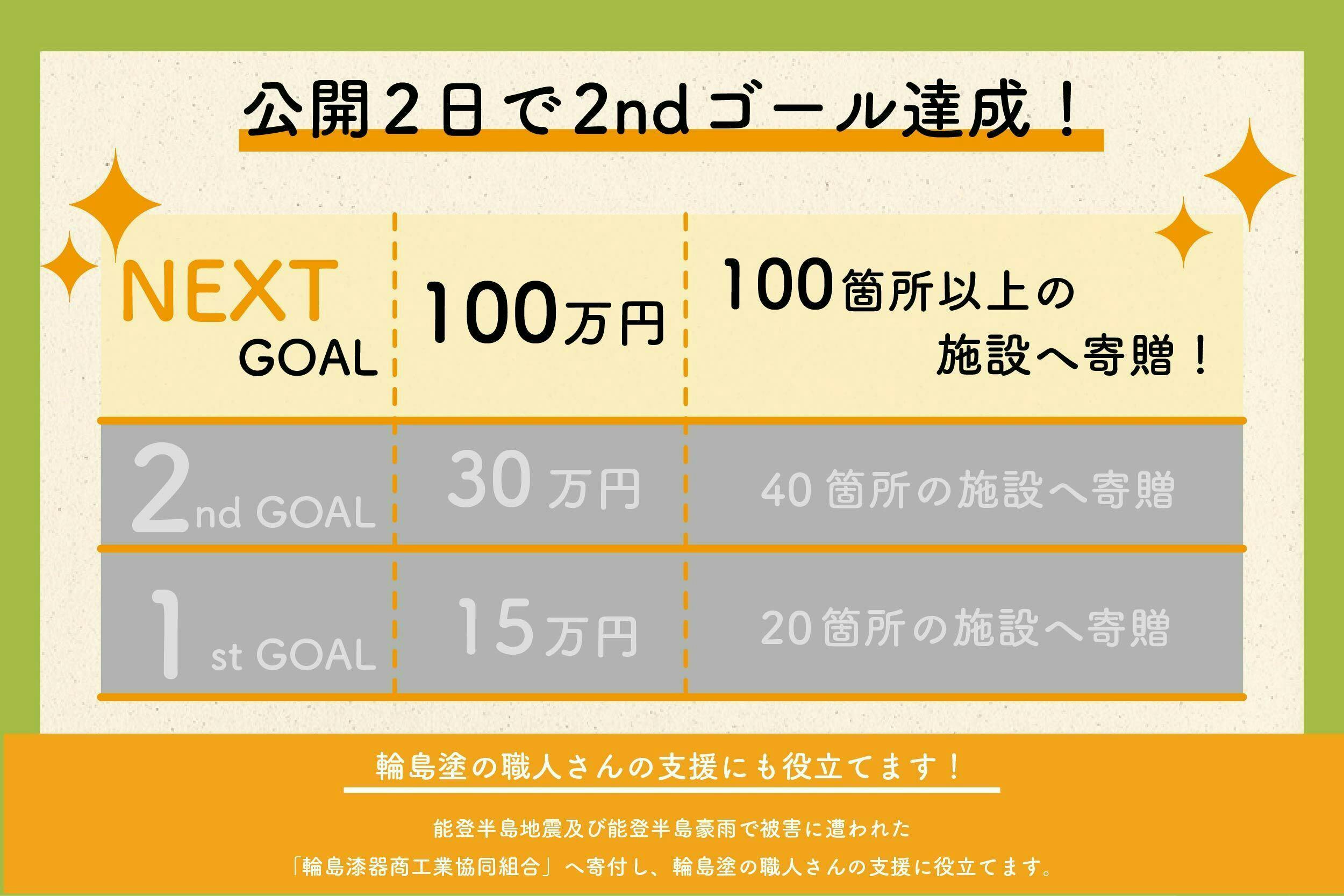 ネクストゴールは、支援額100万・寄贈100箇所!