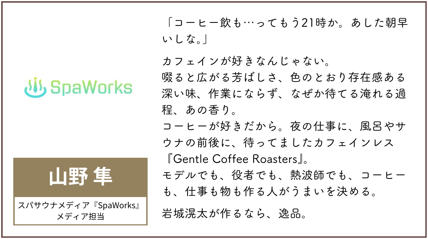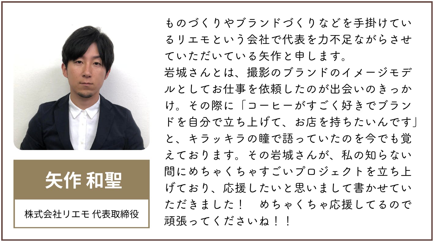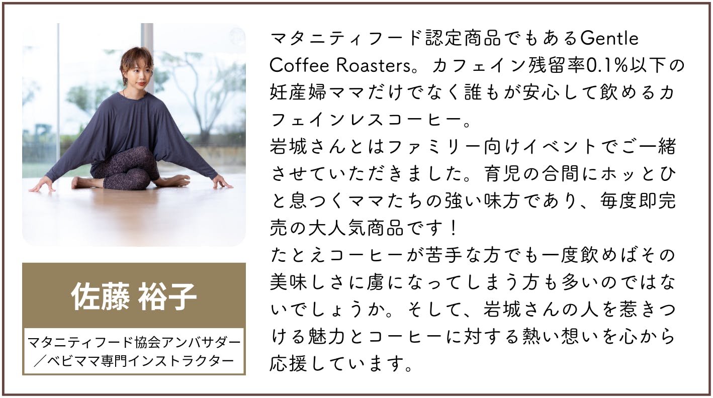 今まで出会ってくれた皆さま、芸能関連でお世話になった皆さま、応援してくれるファンの皆さま、マタニティ関連でお会いした皆さま、サウナ・銭湯でお世話になっている皆さまに、Gentle Coffee Roastersの商品で恩返しができるよう、そして皆さまが誇れるコーヒーショップになれるよう精進してまいりますので、何卒、今後ともどうぞよろしくお願いいたします。