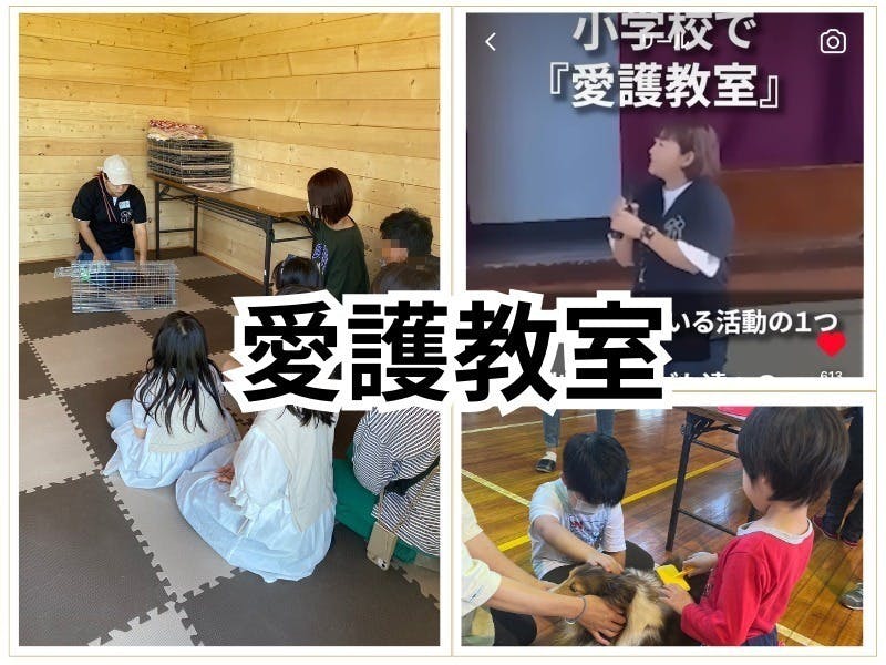 (小学校などで、ワンちゃんとお友達になろう!をテーマに犬のプロの職業体験型 愛護教室を無償で開催してます。)