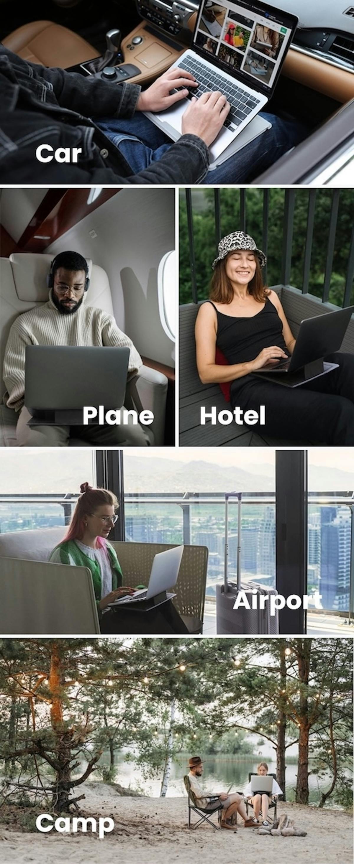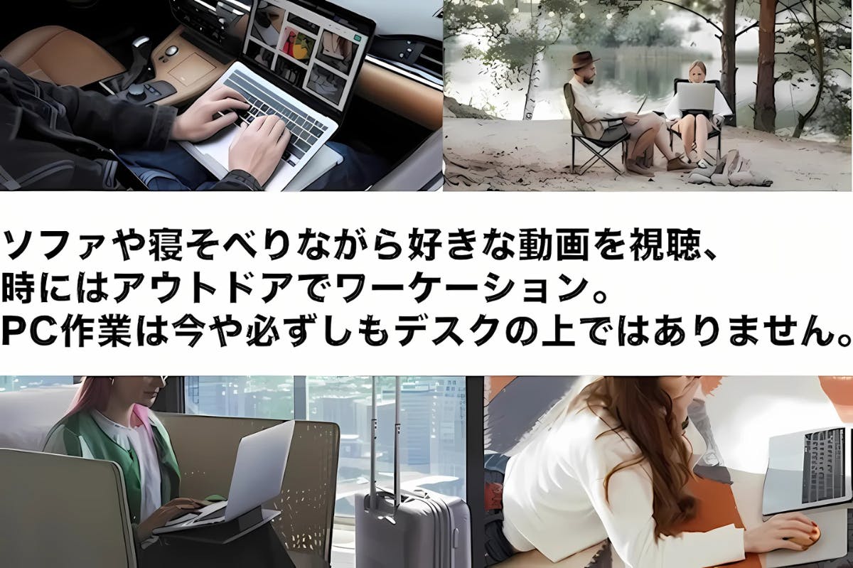 ノートPCを使う場所は今やデスクの上だけではありません。ソファの上やラグに寝そべりながら、時にはアウトドアでも!