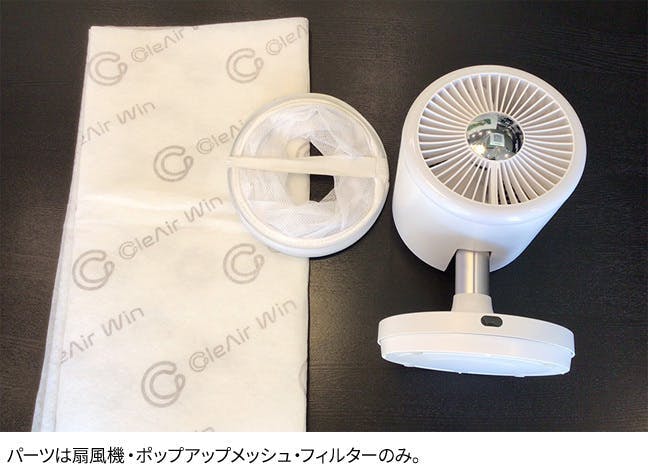 それを行うために開発されたのがクレアウィンフィルターです。特徴としてはエアコンや扇風機の吸い込み口に合わせて切って貼るだけのフィルターです。当初は医療現場、隔離部屋、施設などエアコンがある所に使用されていました。そんな中、エアコンが無い環境でのクレアウィンフィルターを活用した空気濾過の必要性に気づきました。