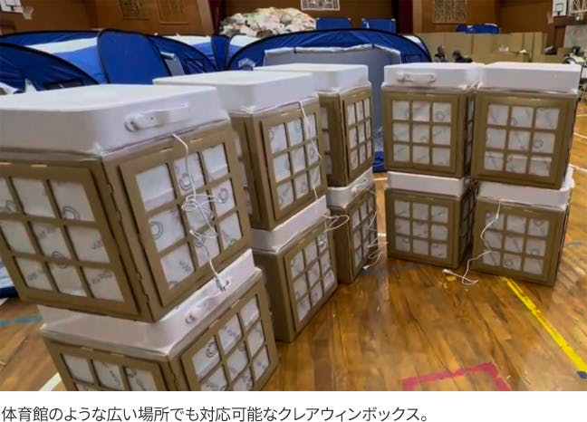 開発者の木下は阪神淡路大震災の被災経験があり、避難所でのクラスター発生を体験していたからです。避難所は大抵体育館などの広い場所であり、エアコンがありません。