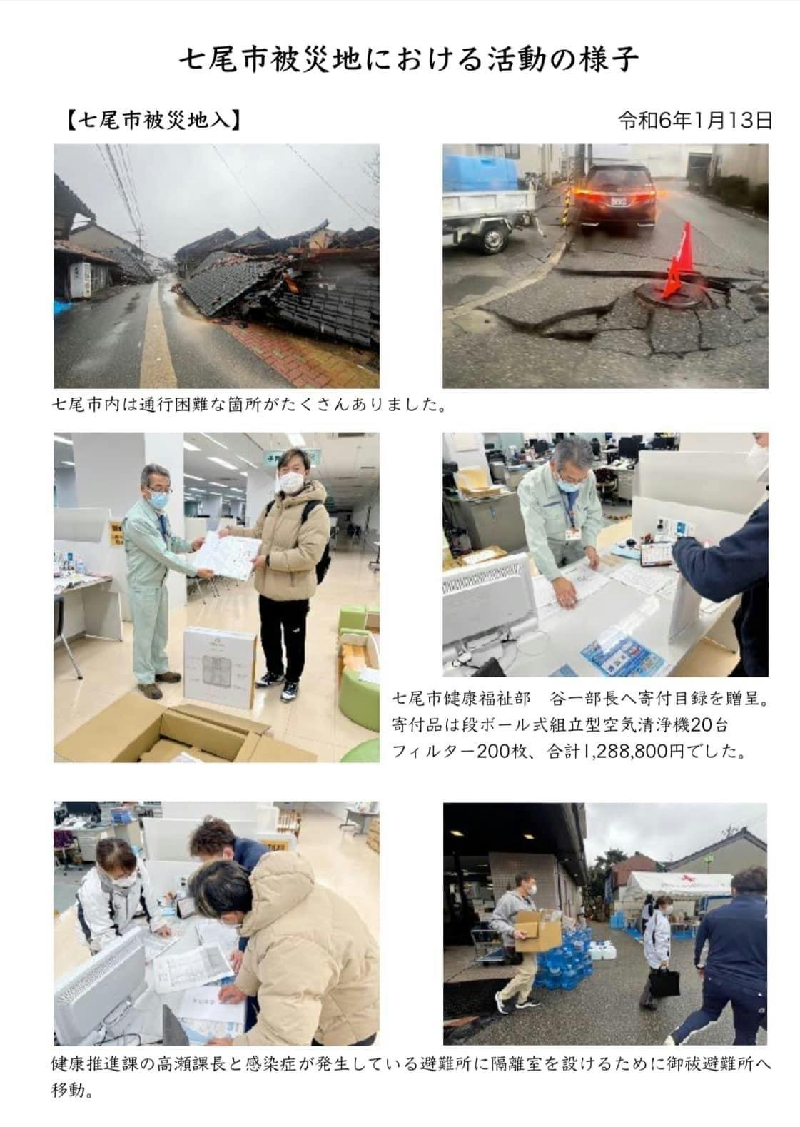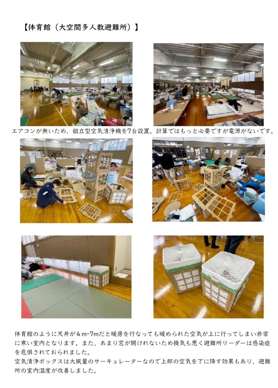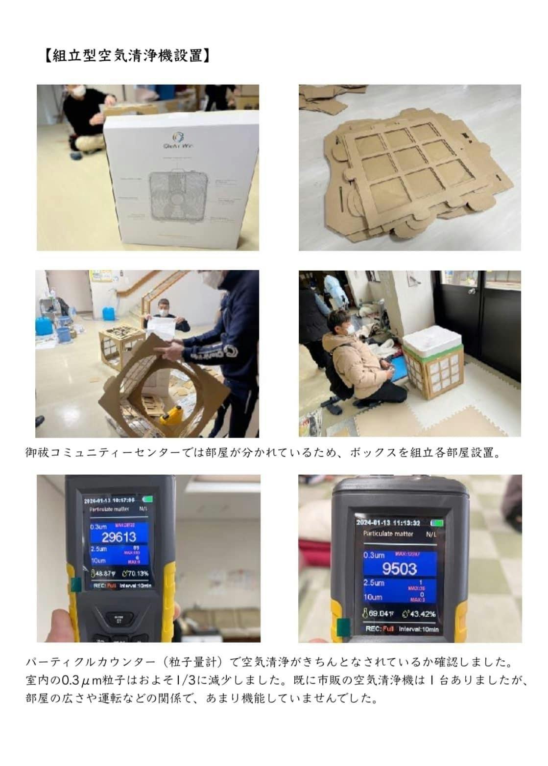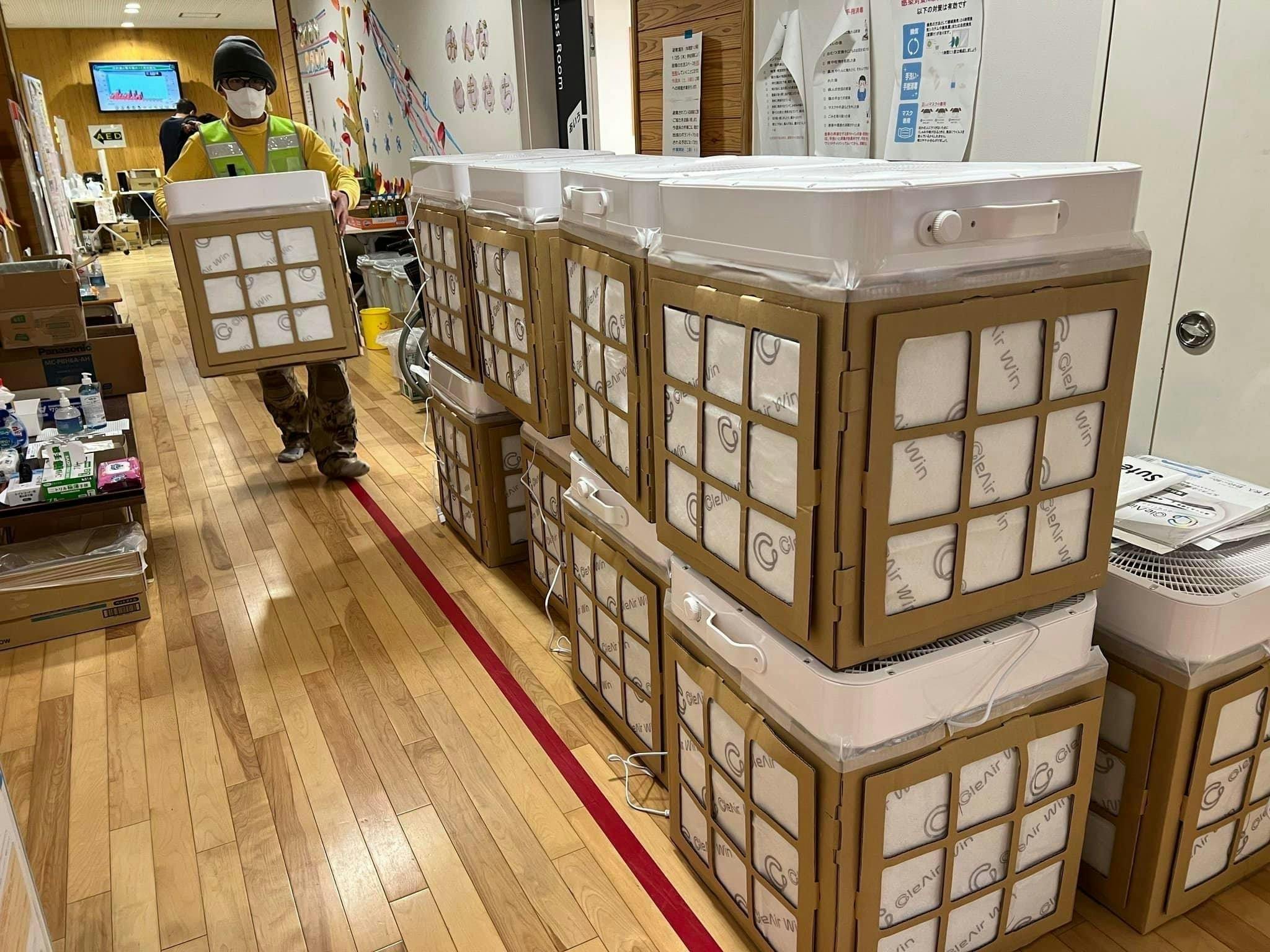 私たちはいち早く、有志と共に能登へ組立式空気清浄機「クレアウィンボックス」の寄付、設置活動を始めました。