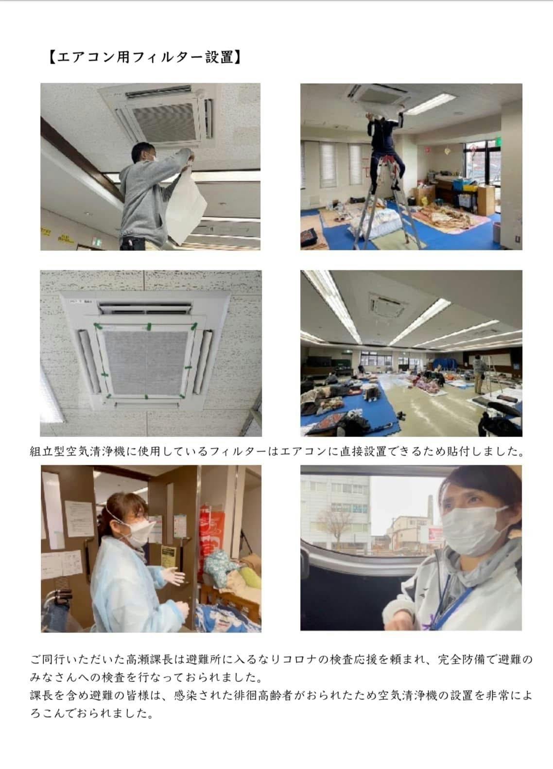 この活動の最中、令和6年1月1日、能登で地震災害がありました。私たちは従前より災害時、避難所の空気環境について懸念をしていました。懸念の通り、避難所では新型コロナを含む様々な感染症が発生し、災害で集団生活を余儀なくされた方々の健康を脅かしていました。