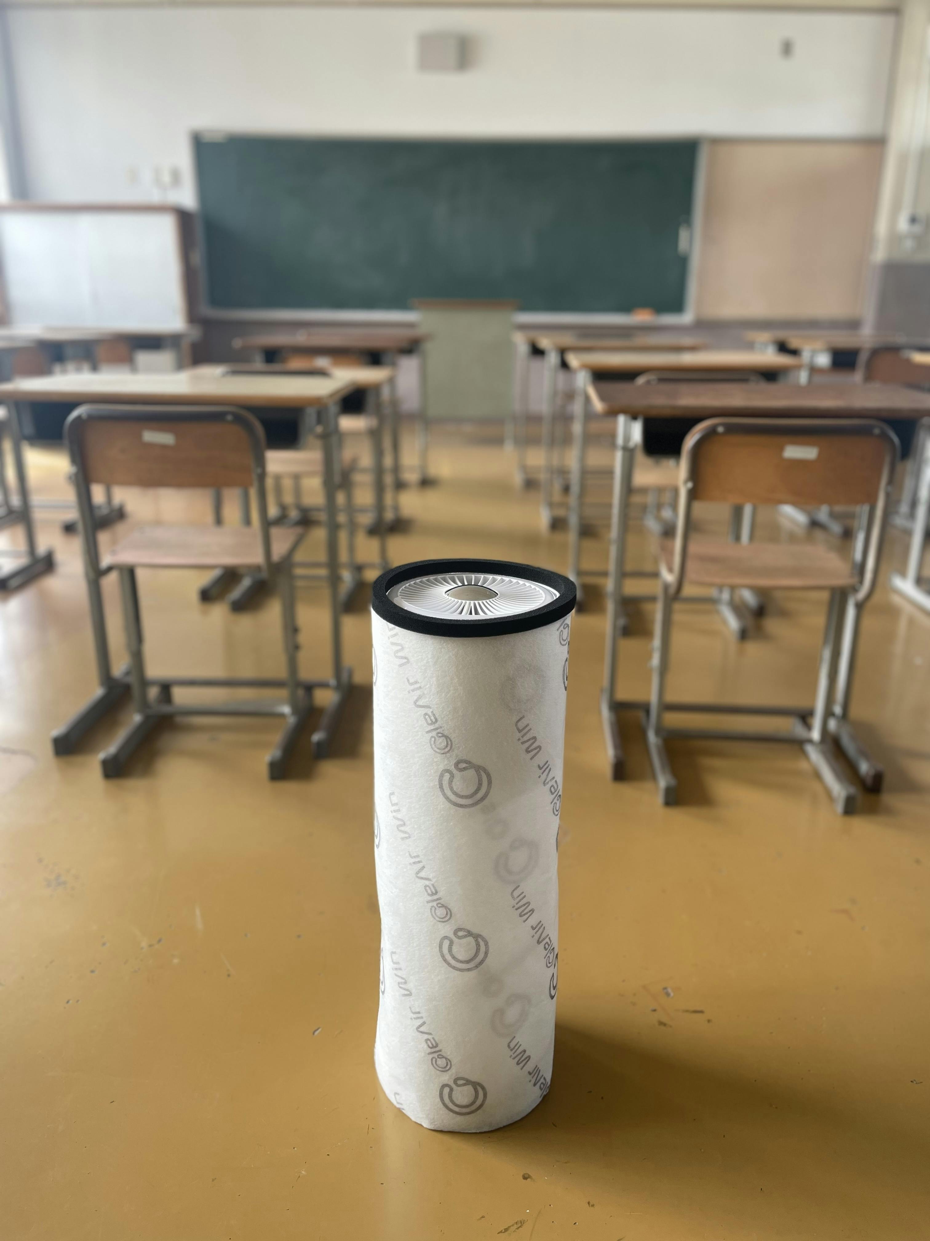 話は少し遡り、2023年には仙台市内の公立小中学校にて、教室や職員室でクレアウィンボックスが空気中の粒子をどのくらい捕まえているのかを24時間1ヶ月測る世界初の検証を行いました。