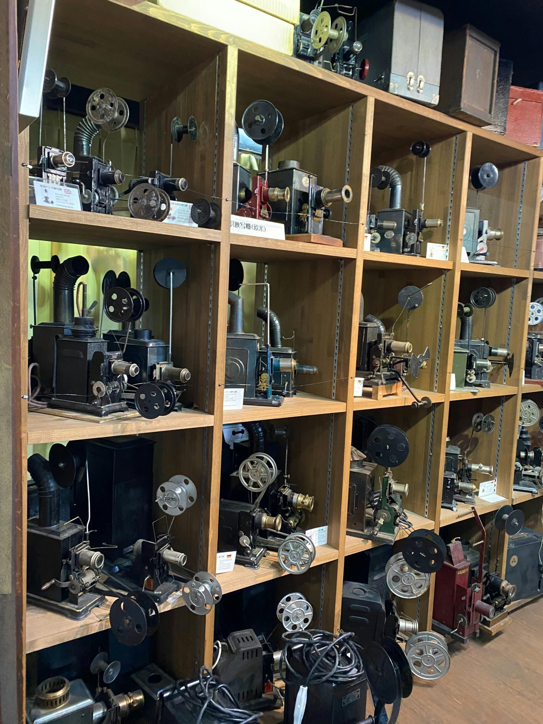 映像だけでなく、19世紀産業革命の時代に誕生した映画は、▼写真(銀板写真のダゲレオタイプ、アンブロタイプ、ティンタイプ、横浜写真など)▼光学玩具(残像現象や仮現運動によって静止画が動いて見える原理=アニメ玩具)▼幻灯機(マジック・ランタン=画像を拡大して見せる映写装置)の3つの要素が関わりました。プレ・シネマ(映画前史)は、映画やアニメーションの原点です。これらを展示するだけでなく、触って体験もできる世界でも珍しい施設です。そして、当館の名前にもなっている各国の家庭用おもちゃ映写機や実際に撮影現場で用いられた撮影機や映写機も展示しています。