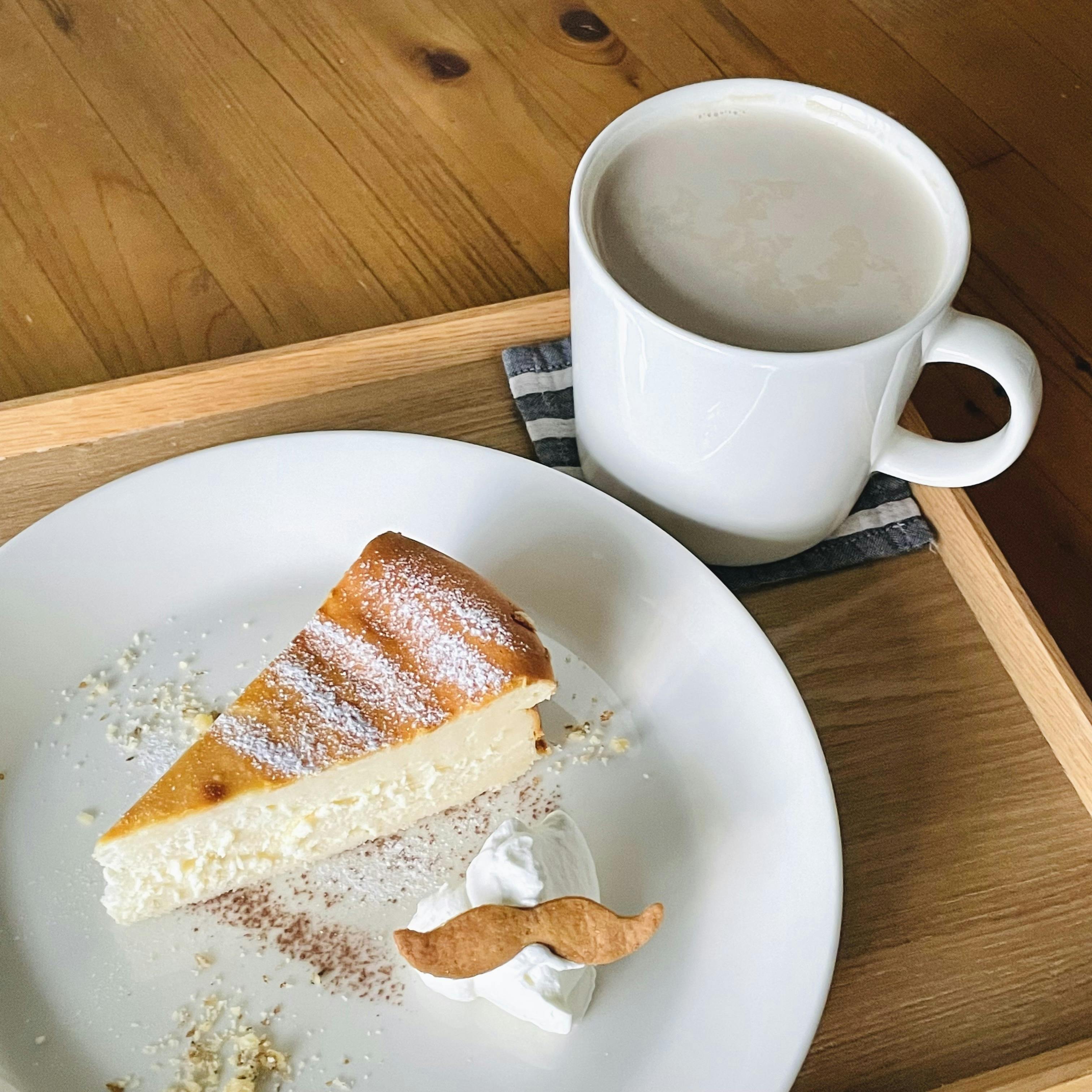 ポットにいれた紅茶。あわせて焼き上げたベイクドチーズケーキ。